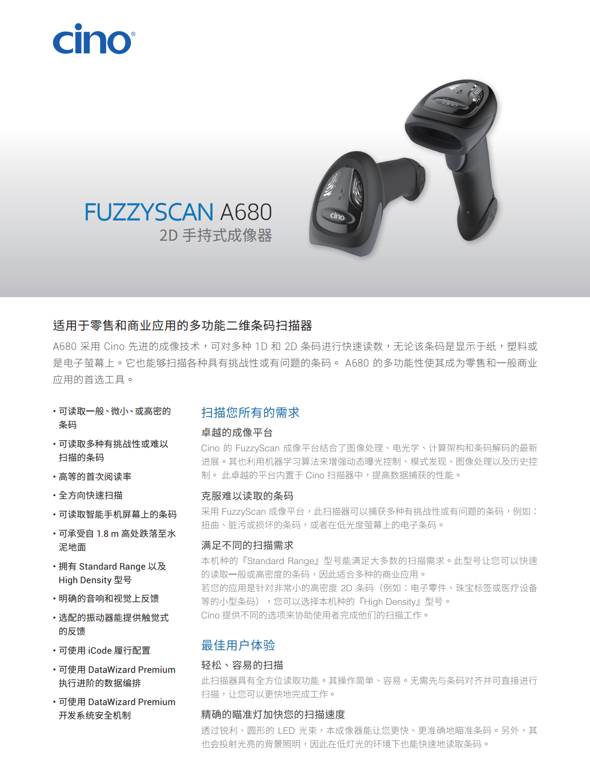 上一篇:FUZZYSCAN A680BT 2D 无线成像器