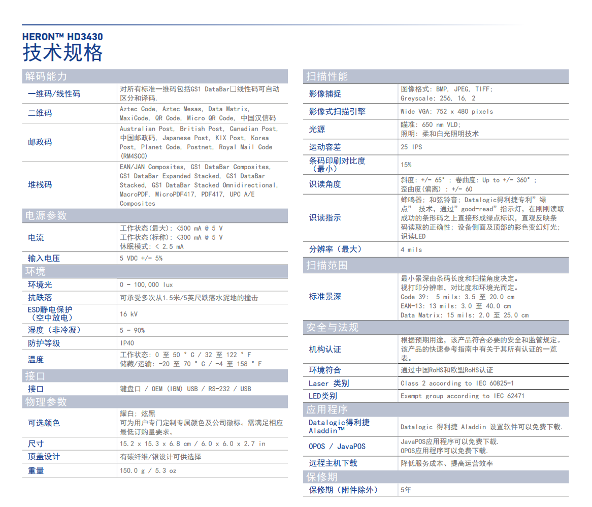 HERON HD3430 2D 影像式扫描器