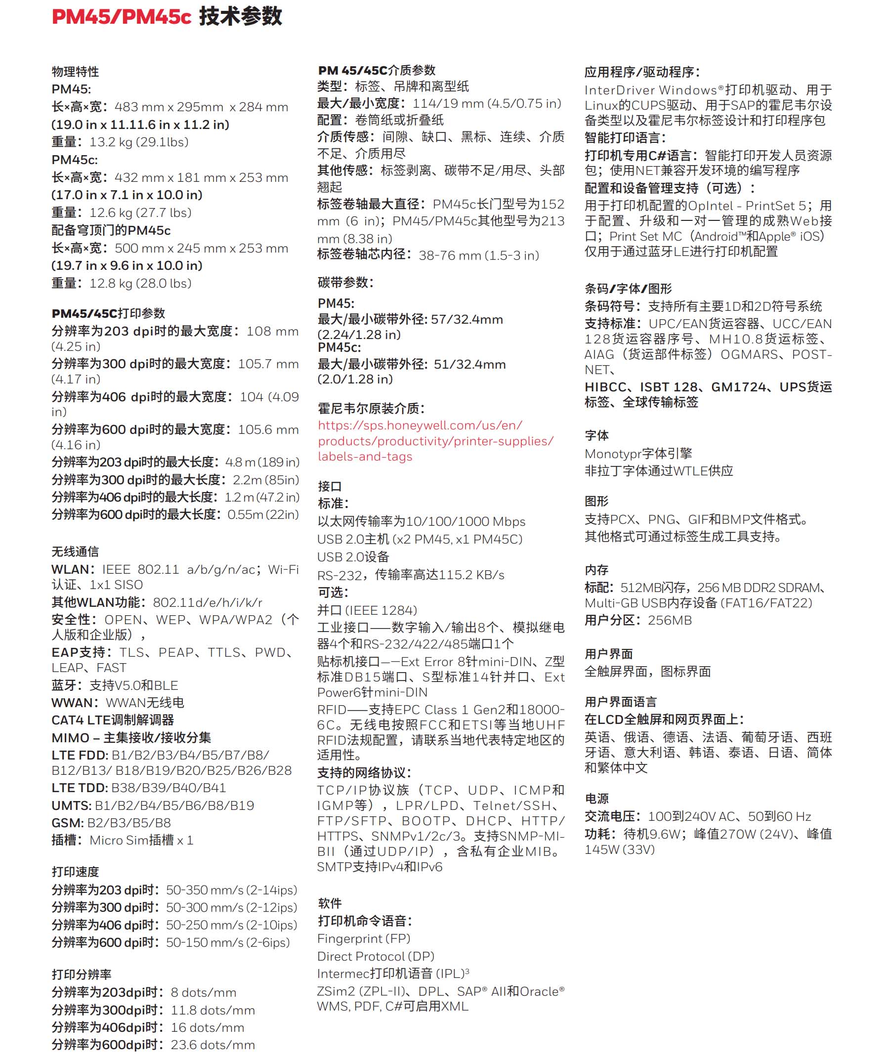 PM45 / PM45C 工业标签打印机