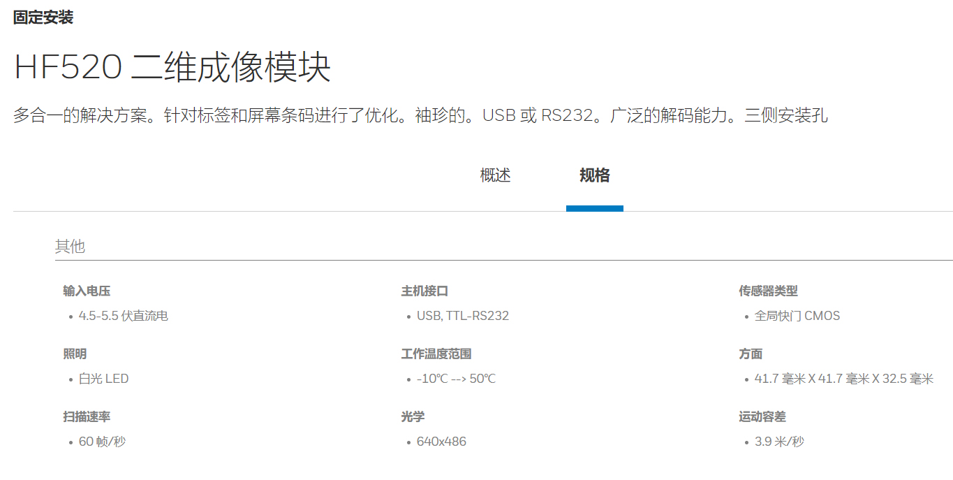 霍尼韦尔 HF520 新一代紧凑型模块适用于固定安装应用,配备最新的 Gen7 解码内核,可为手机屏幕或纸上的所有一维、PDF 和二维条码提供强大的扫描性能。