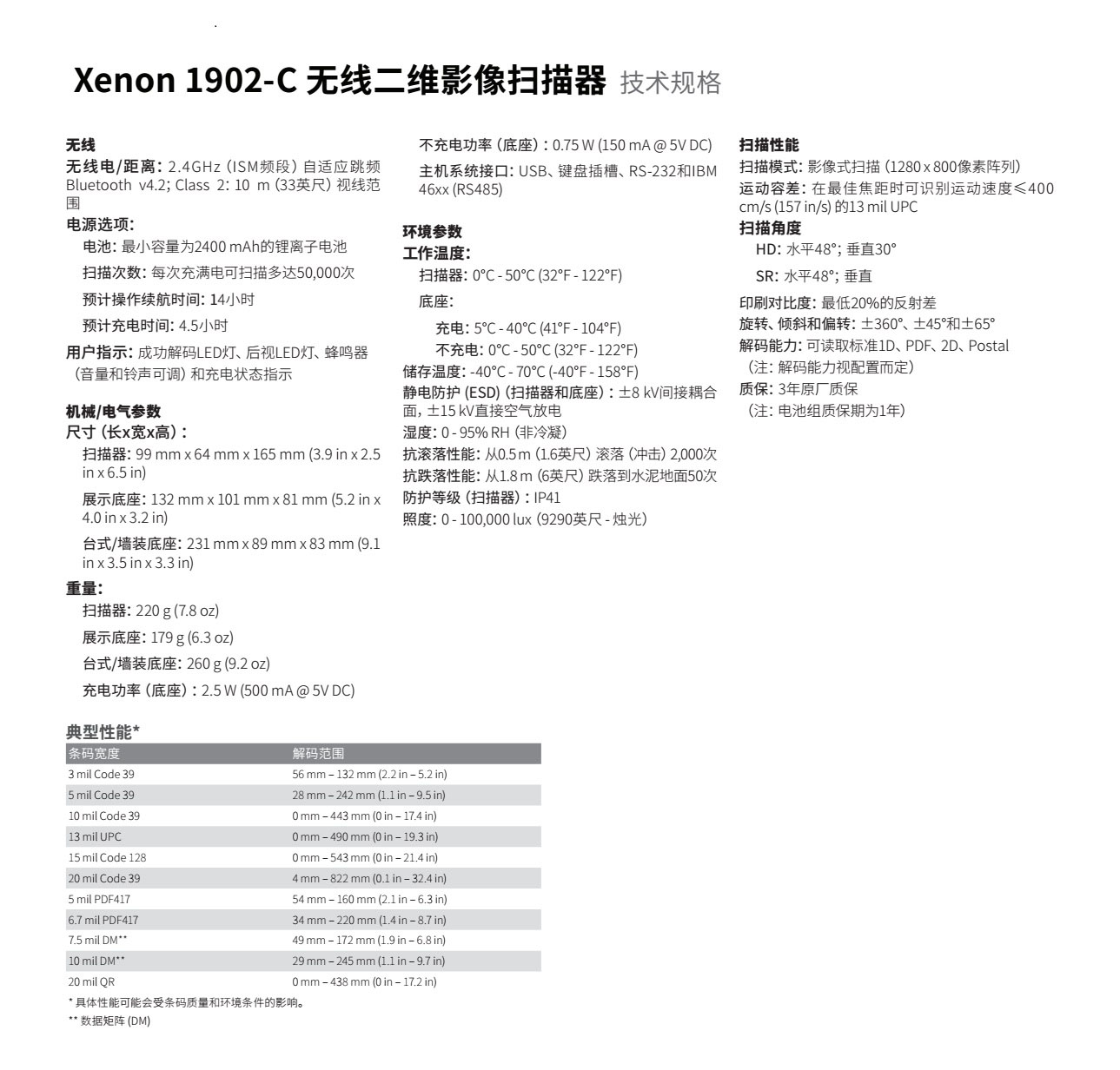 Xenon 1902-C 无线二维影像扫描器