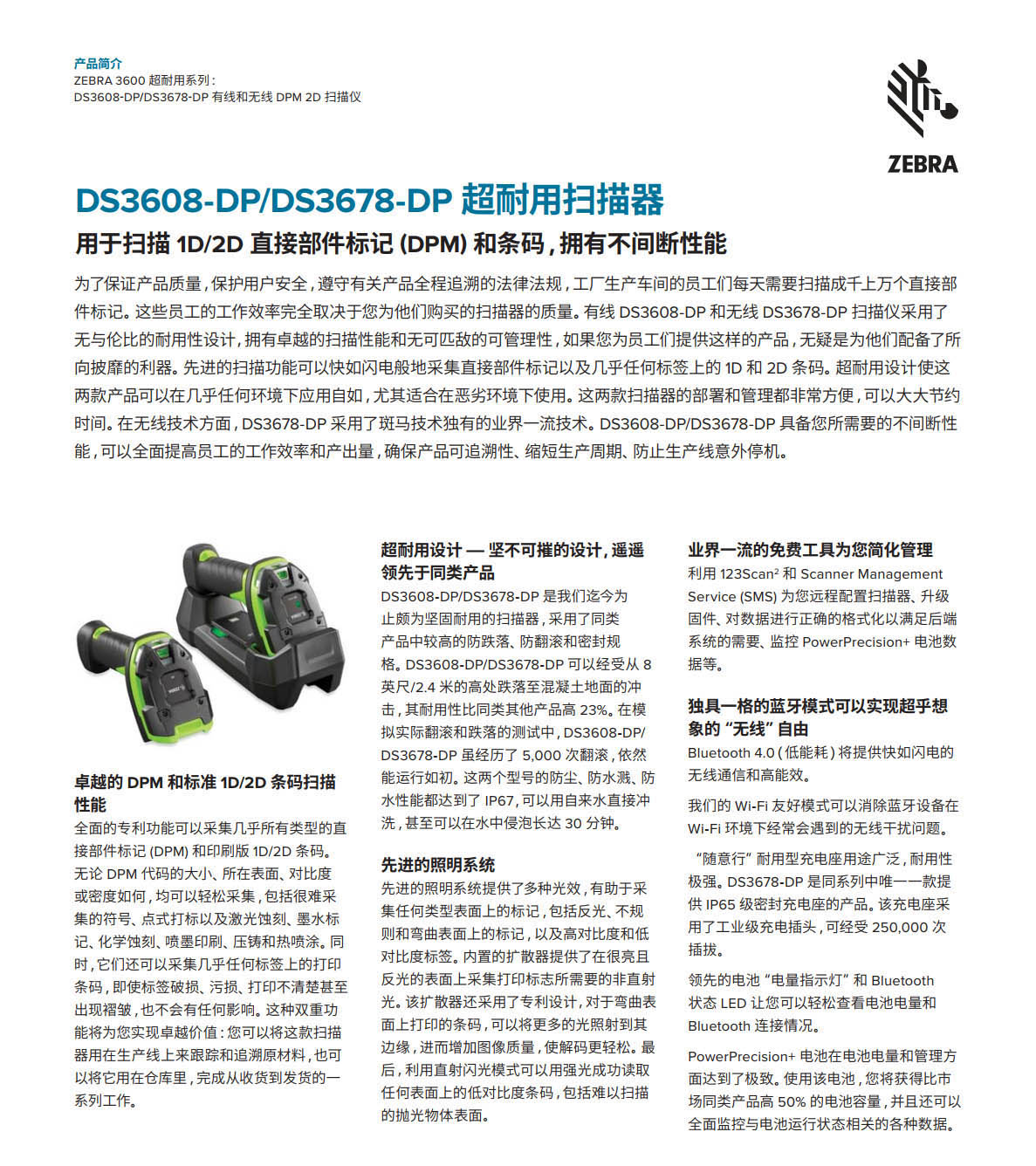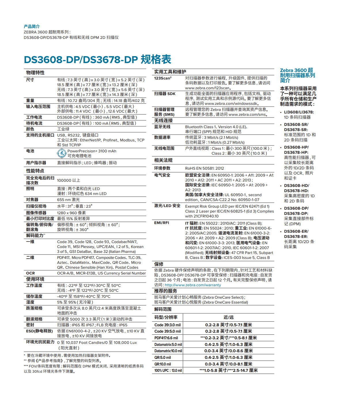 DS3608-DP/DS3678-DP 有线和无线 DPM 2D 线性扫描仪