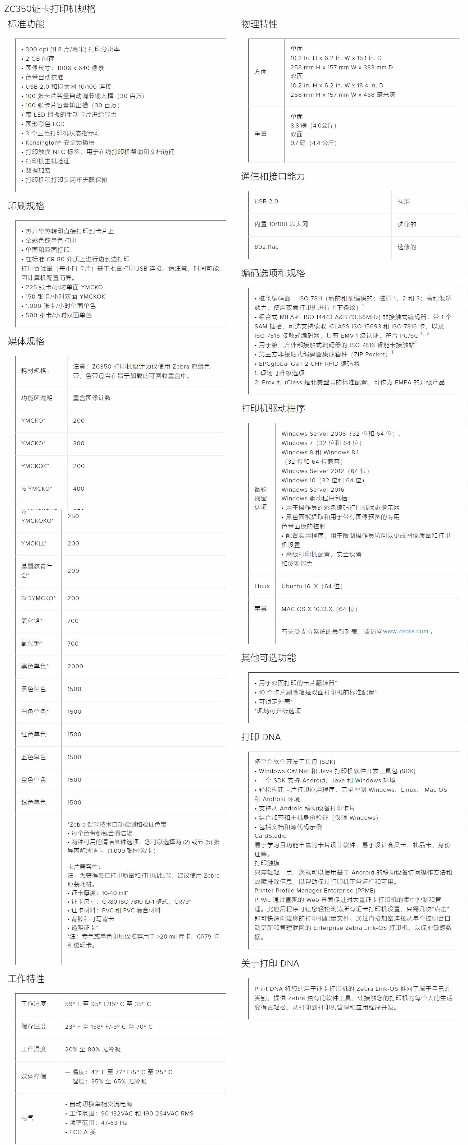 使用 ZC350 以突破性的简单性设计和打印几乎任何卡片。您可以随时随地以闪电般的速度打印所需的内容。使用提供特殊颜色和特殊效果的新色带打印单面或双面边对边彩色或黑白卡片。即使是最复杂的卡片,您也可以获得简单的按钮式卡片打印。此类打印机中最纤薄的适合无处不在的设计,让您可以在任何需要的地方轻松添加卡片打印。由于几乎所有编码选项都集成在一起,您可以开箱即用地打印接触式、非接触式、感应式或磁条卡。