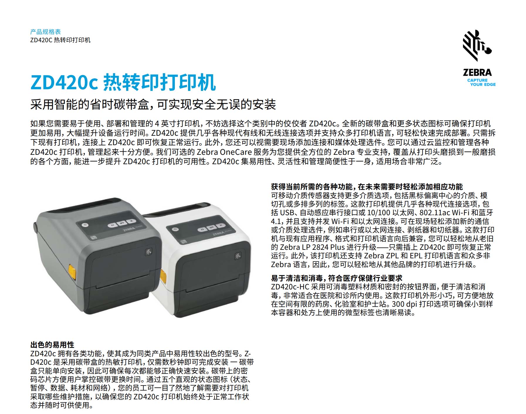 ZD420c 4英寸 热敏 碳带盒打印机