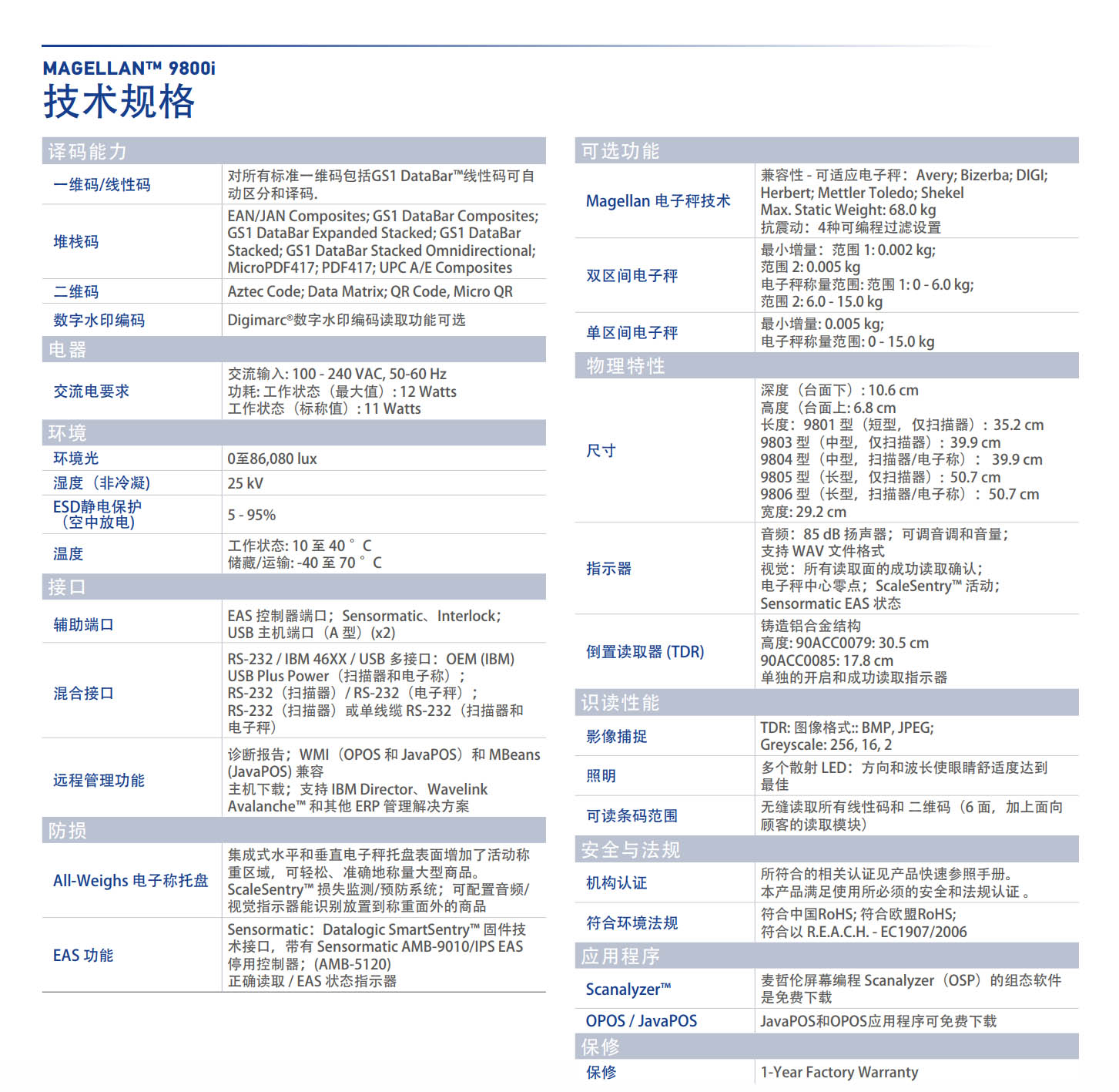 Magellan 9800i 扫描平台/电子秤