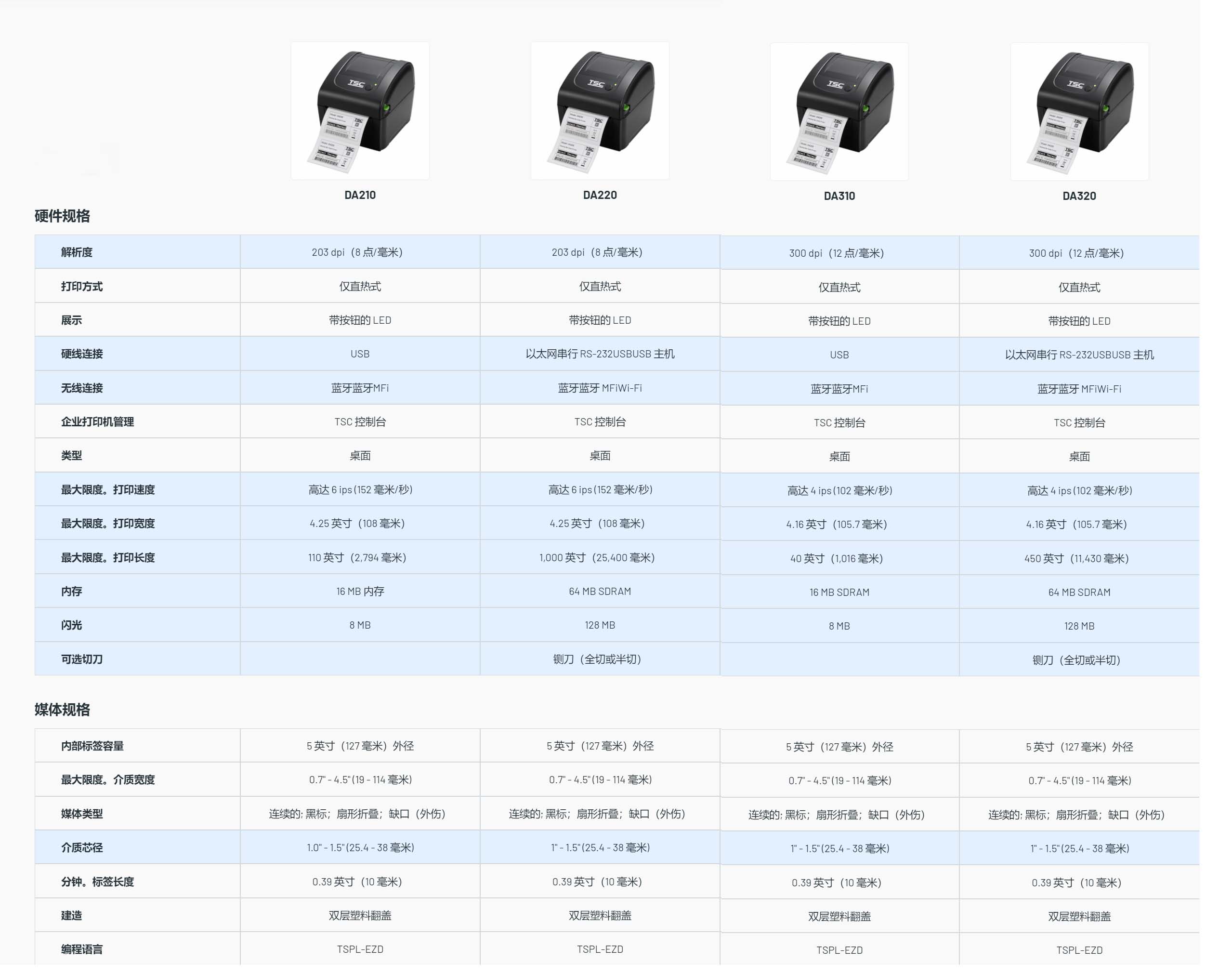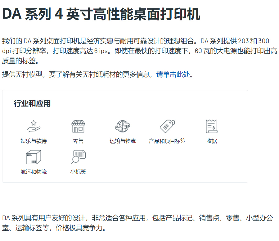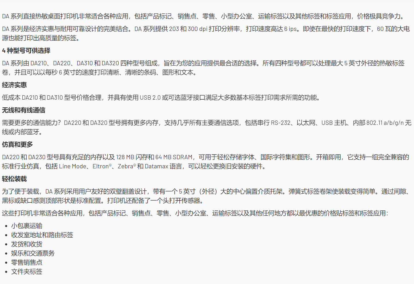 DA210 / DA220 系列 4英吋 桌上型 热感式 条码打印机