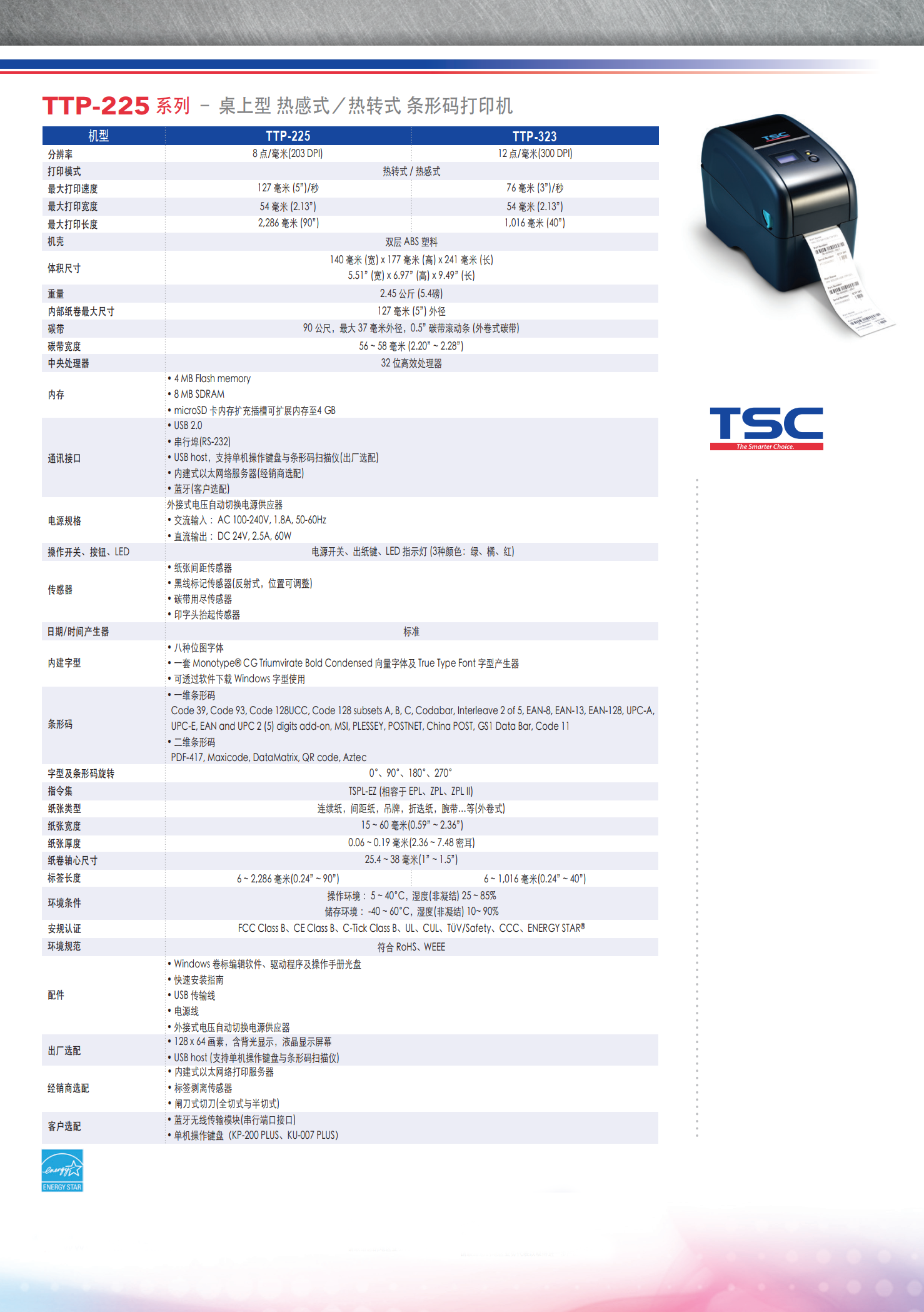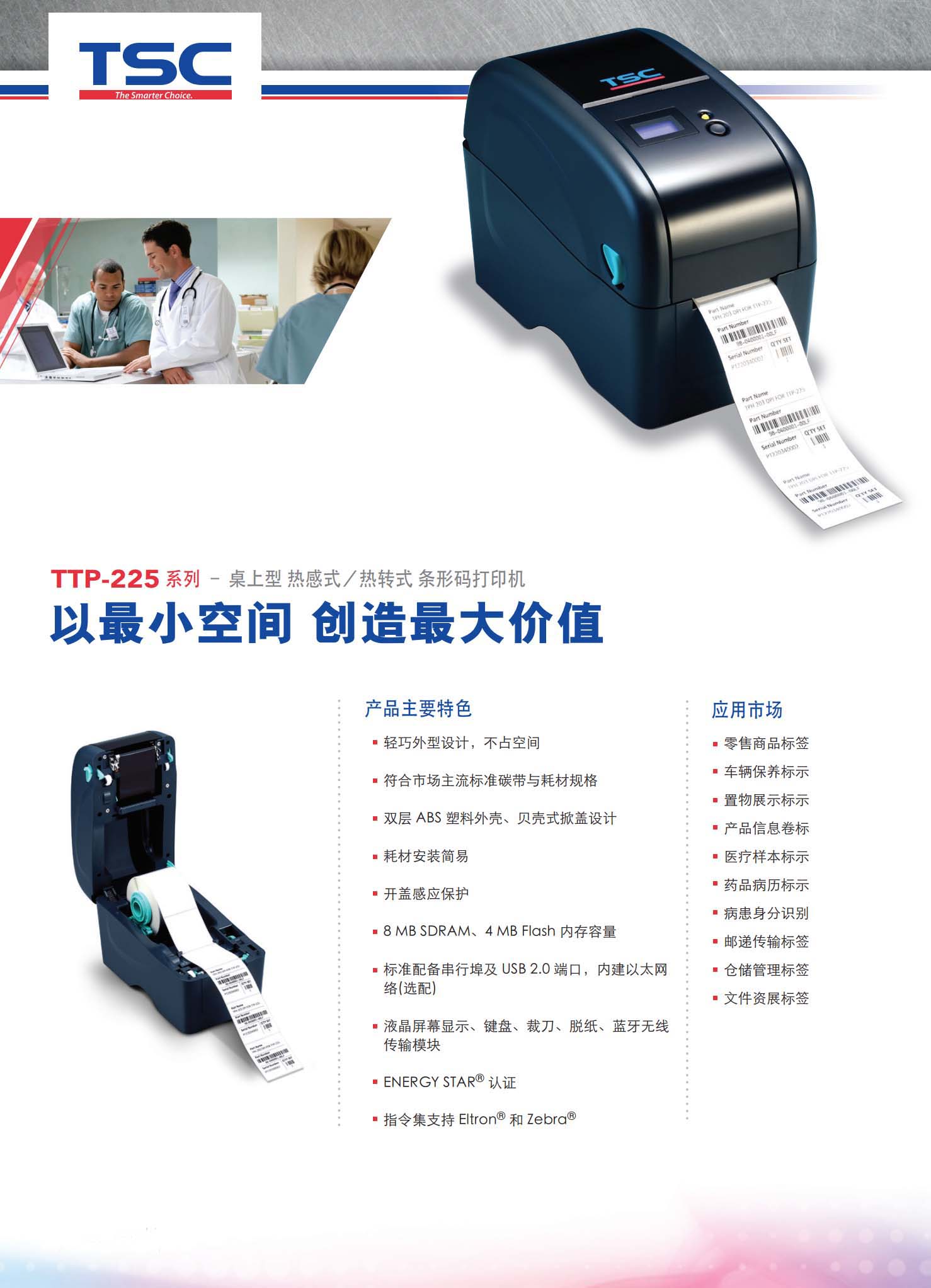 TTP225 系列 2英吋桌上型 热感式/热转式 条形码打印机