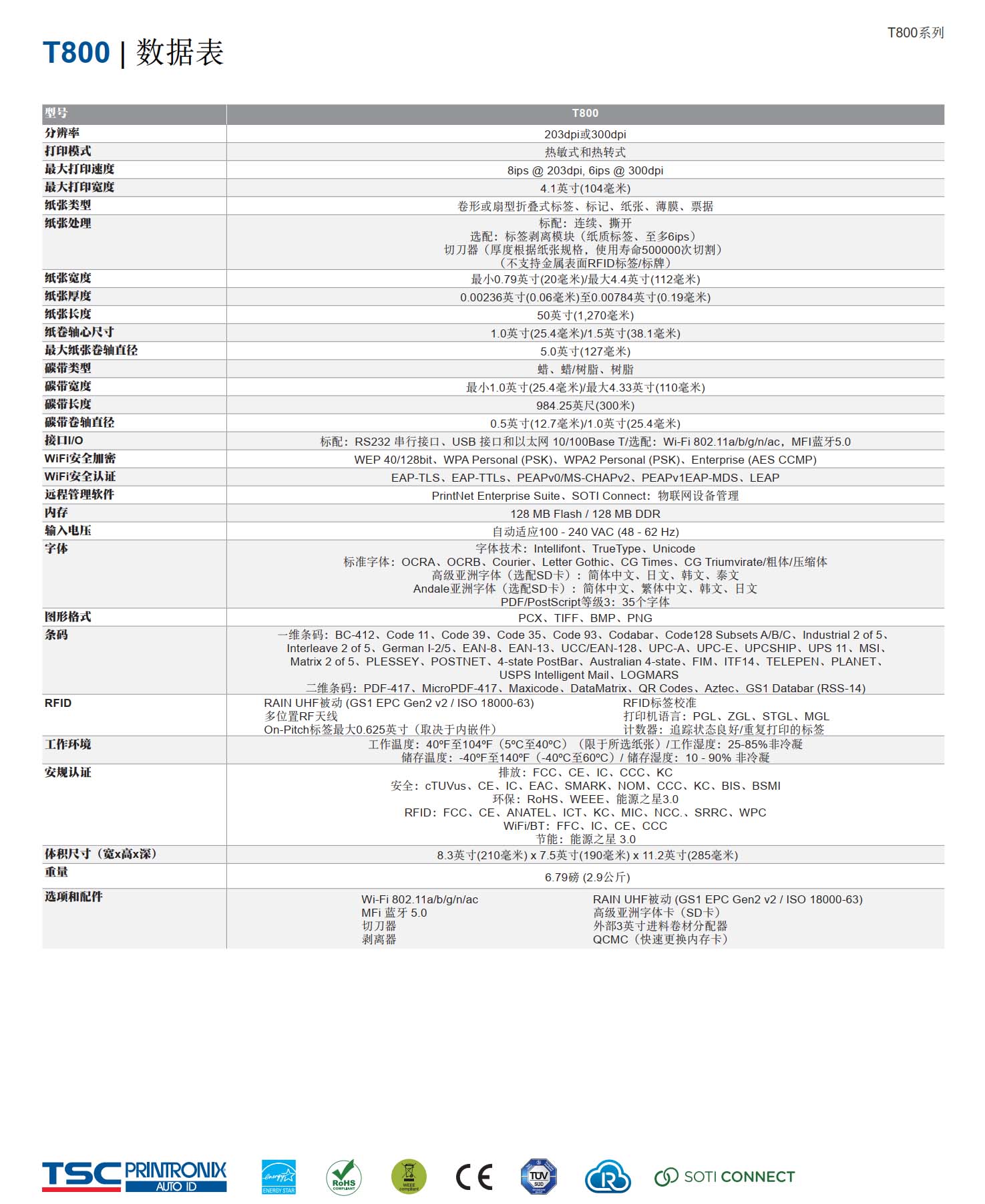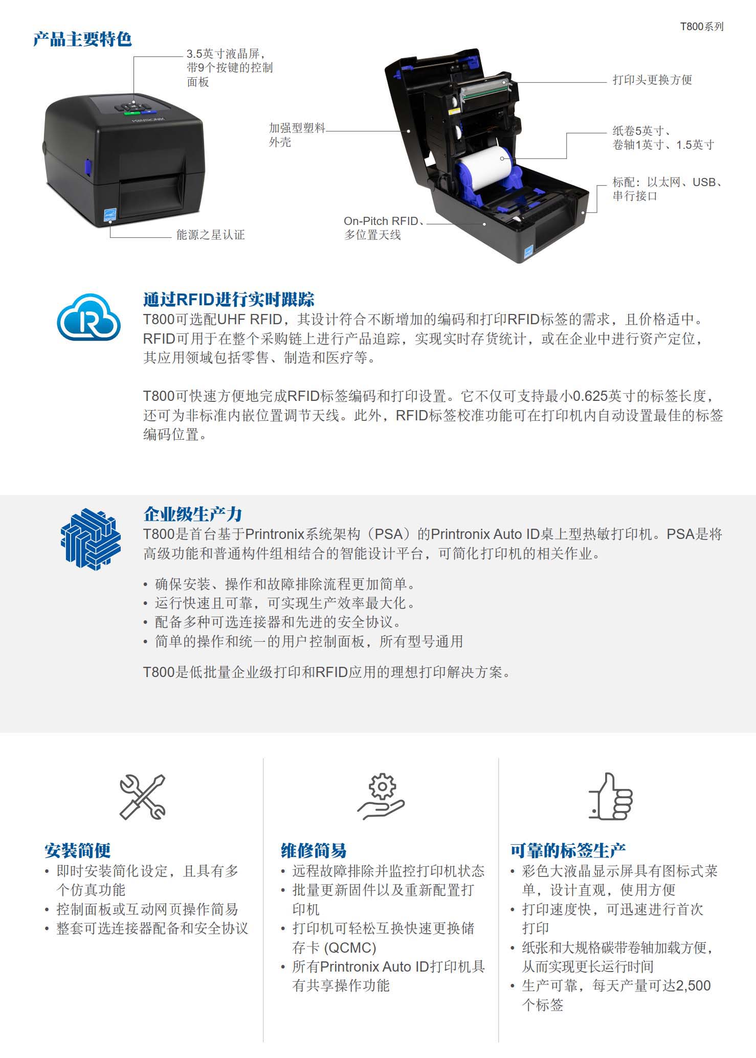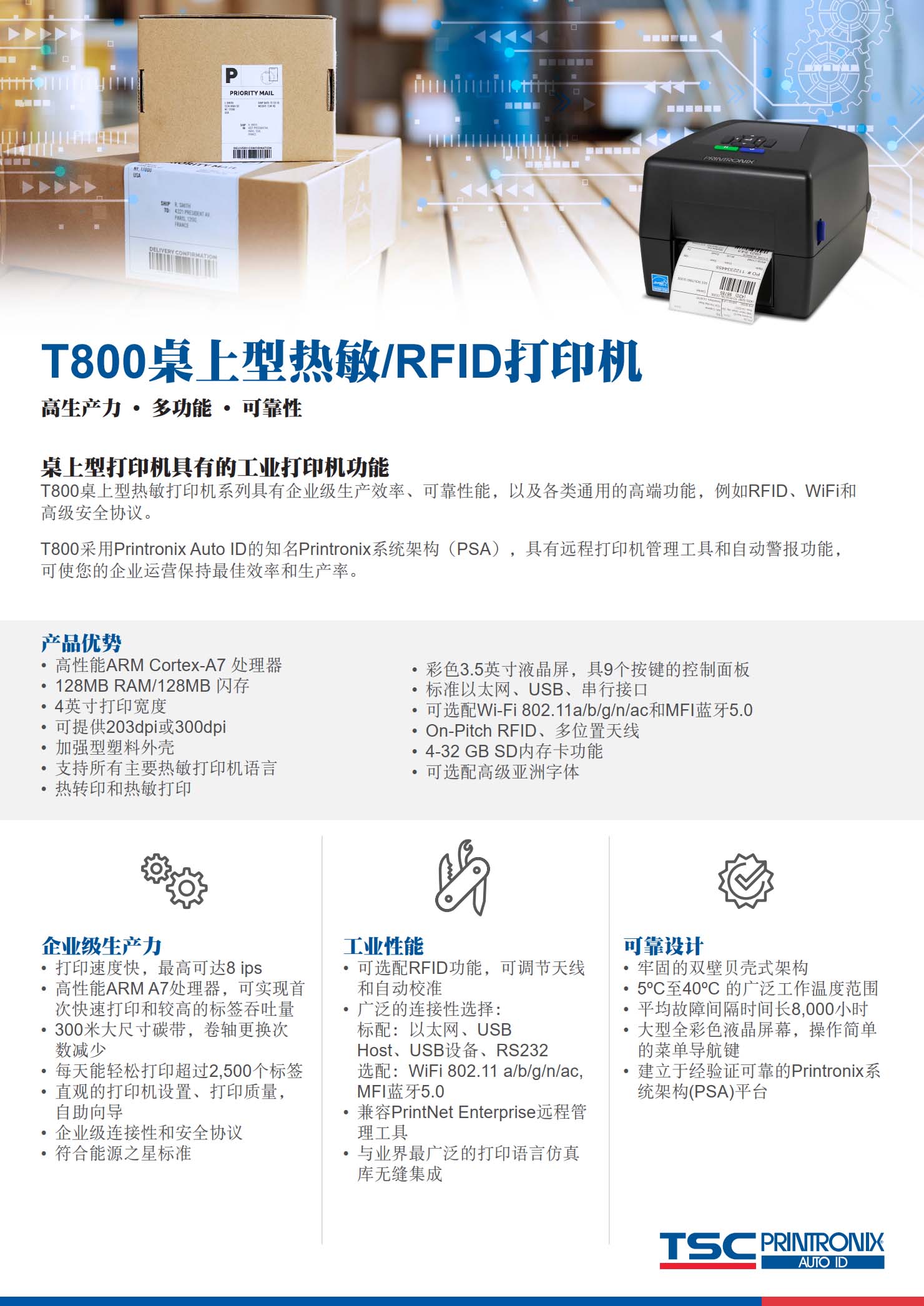 T800 系列 4英吋 企业级 桌上型 热感式/热转式 RFID 打印机