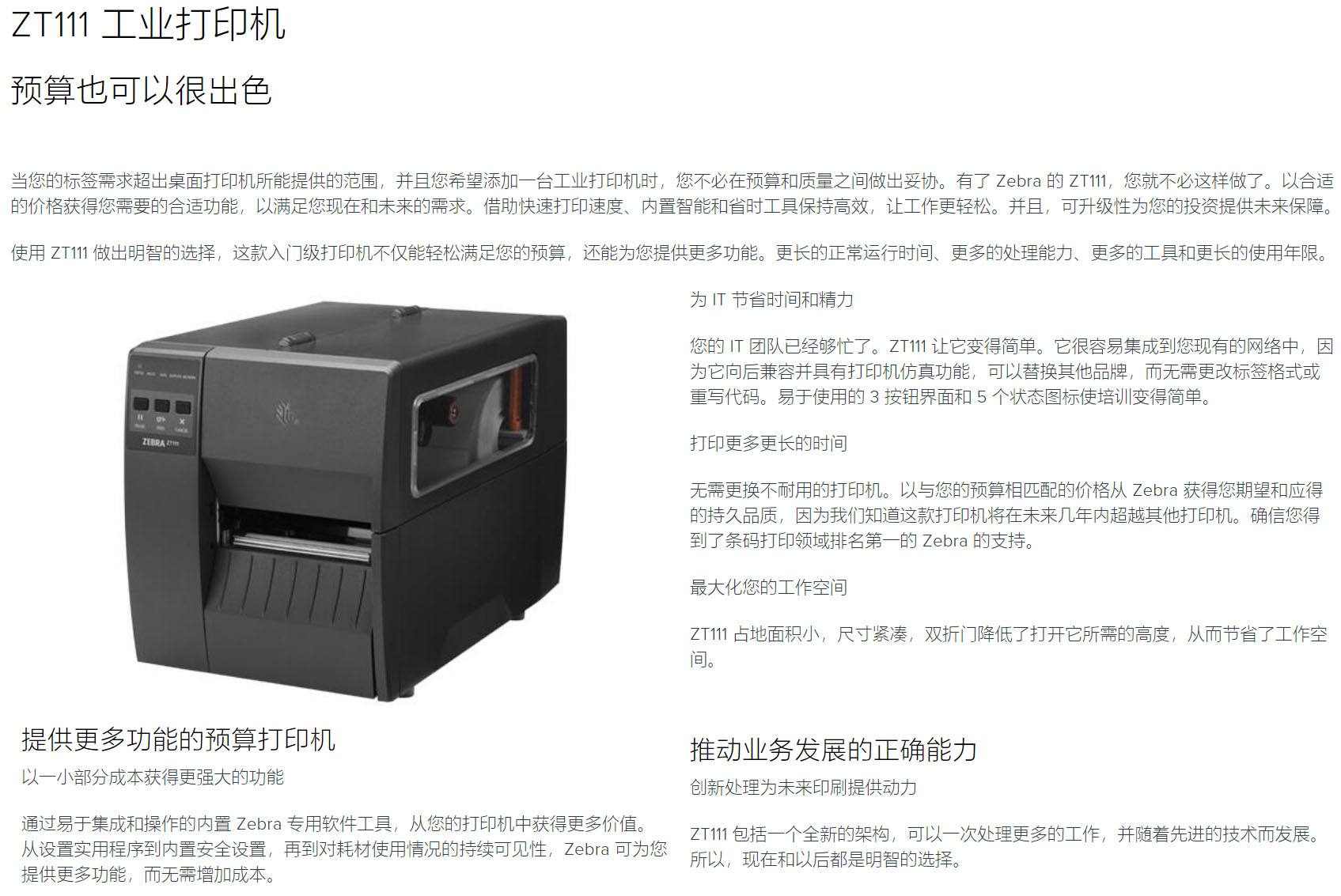 ZT111 4英寸 热转印 / 热敏 工业打印机