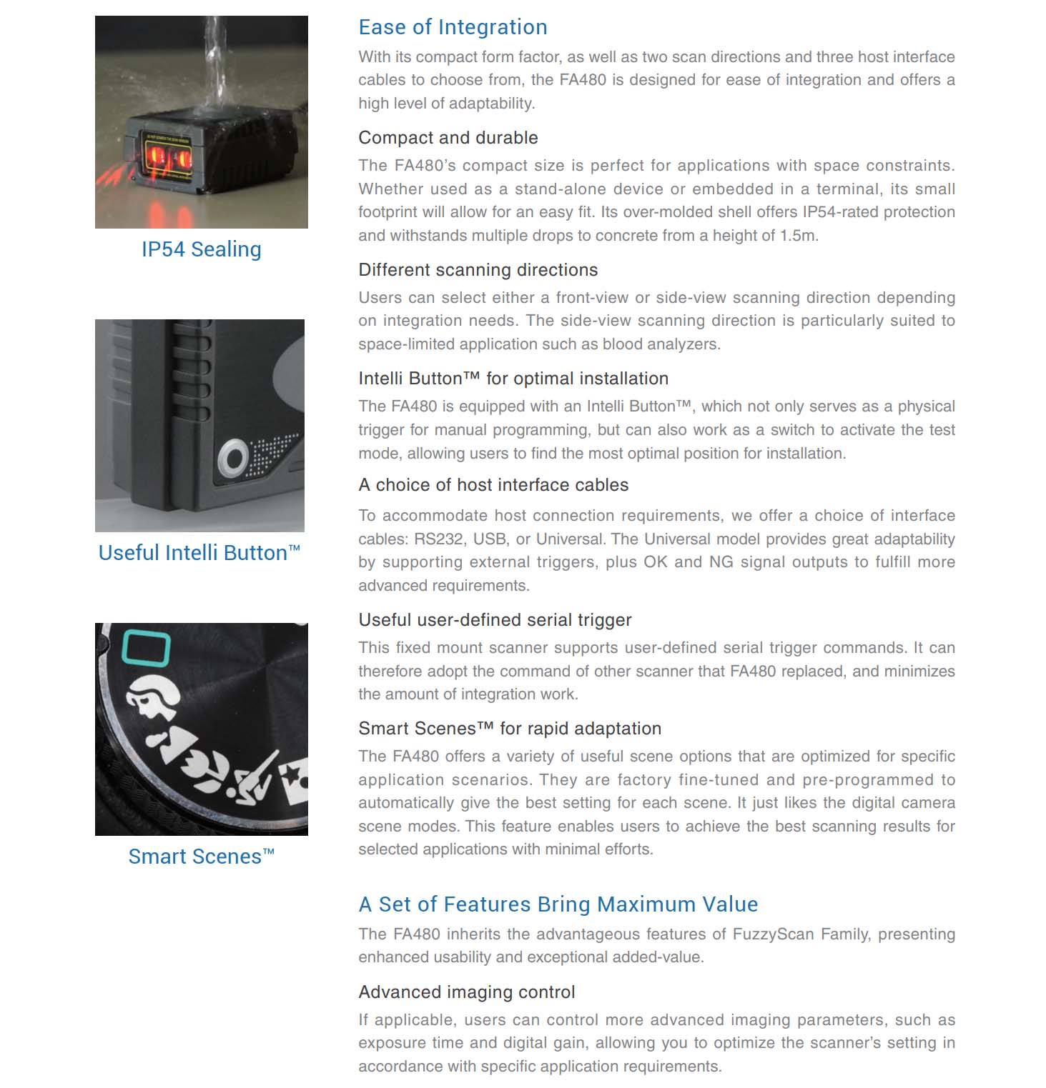 FUZZYSCAN FA480 Series 2D Fixed Mount Scanner