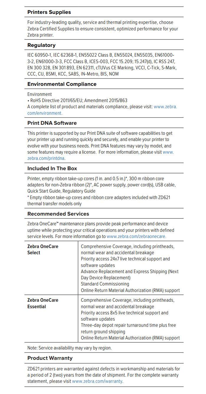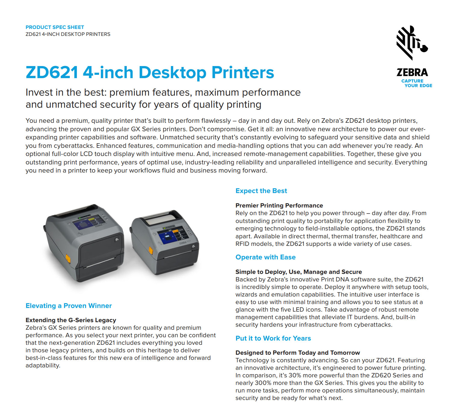 ZD621 4 Inch Thermal Transfer / Direct Thermal Printers