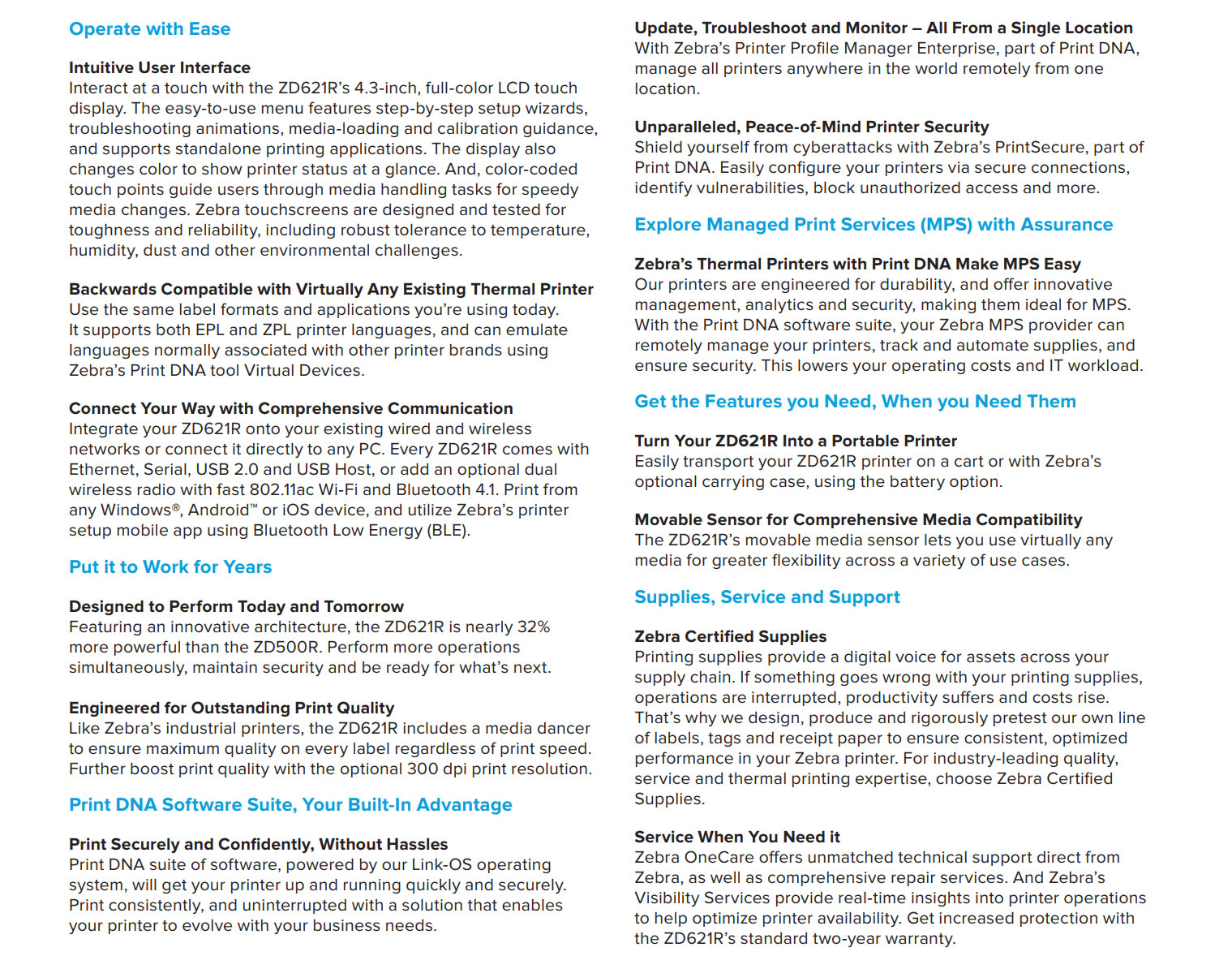 Next:ZD621 4 Inch Thermal Transfer / Direct Thermal Printers