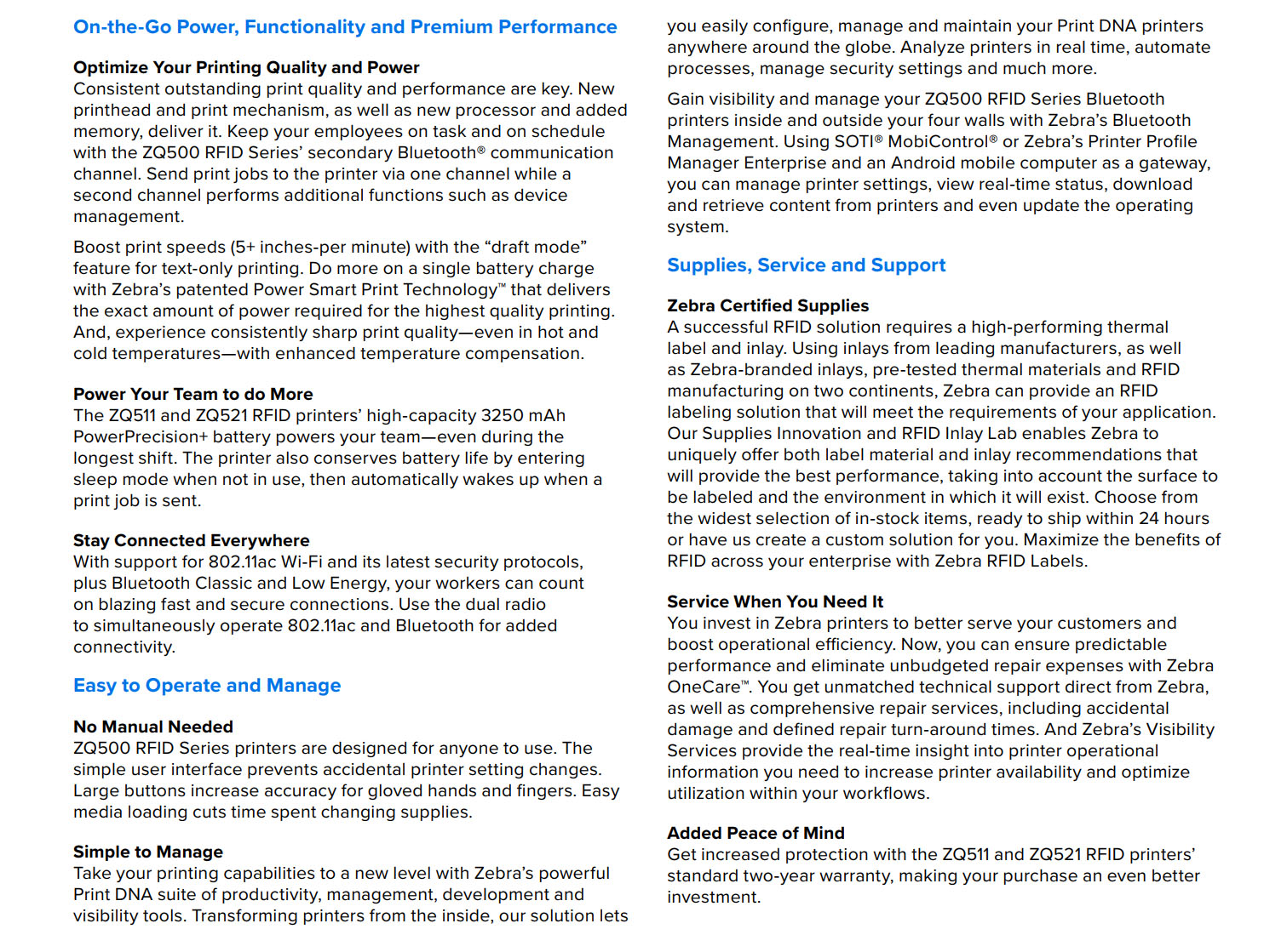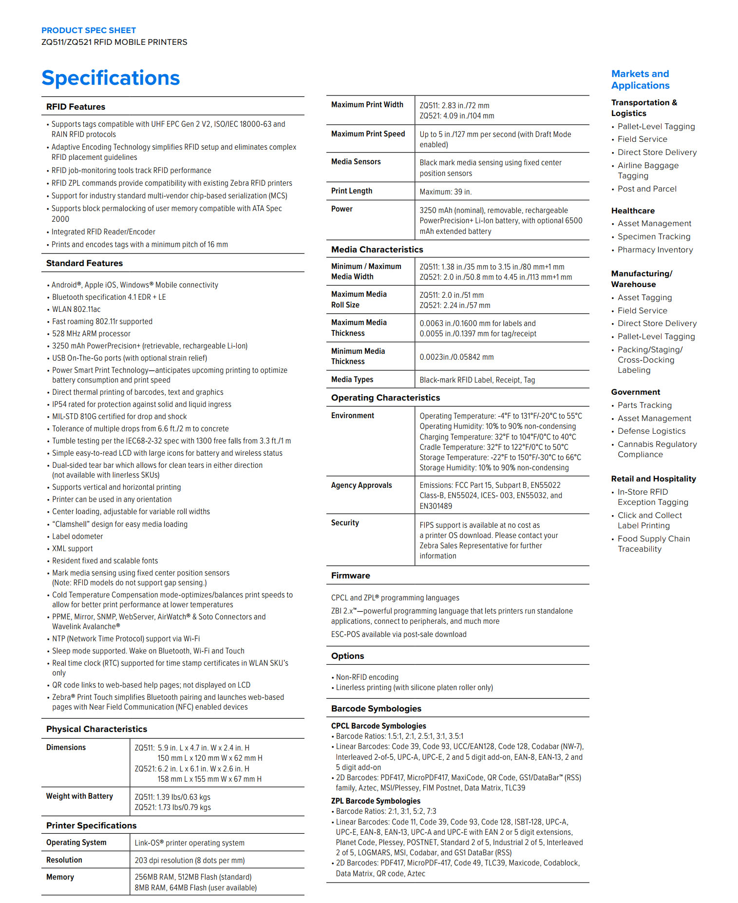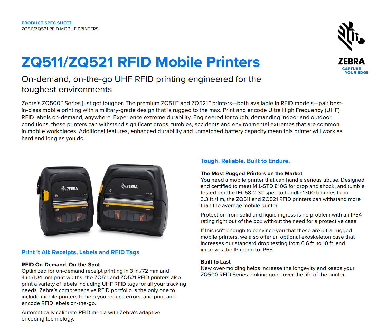 ZQ511 3 Inch RFID Mobile Printer