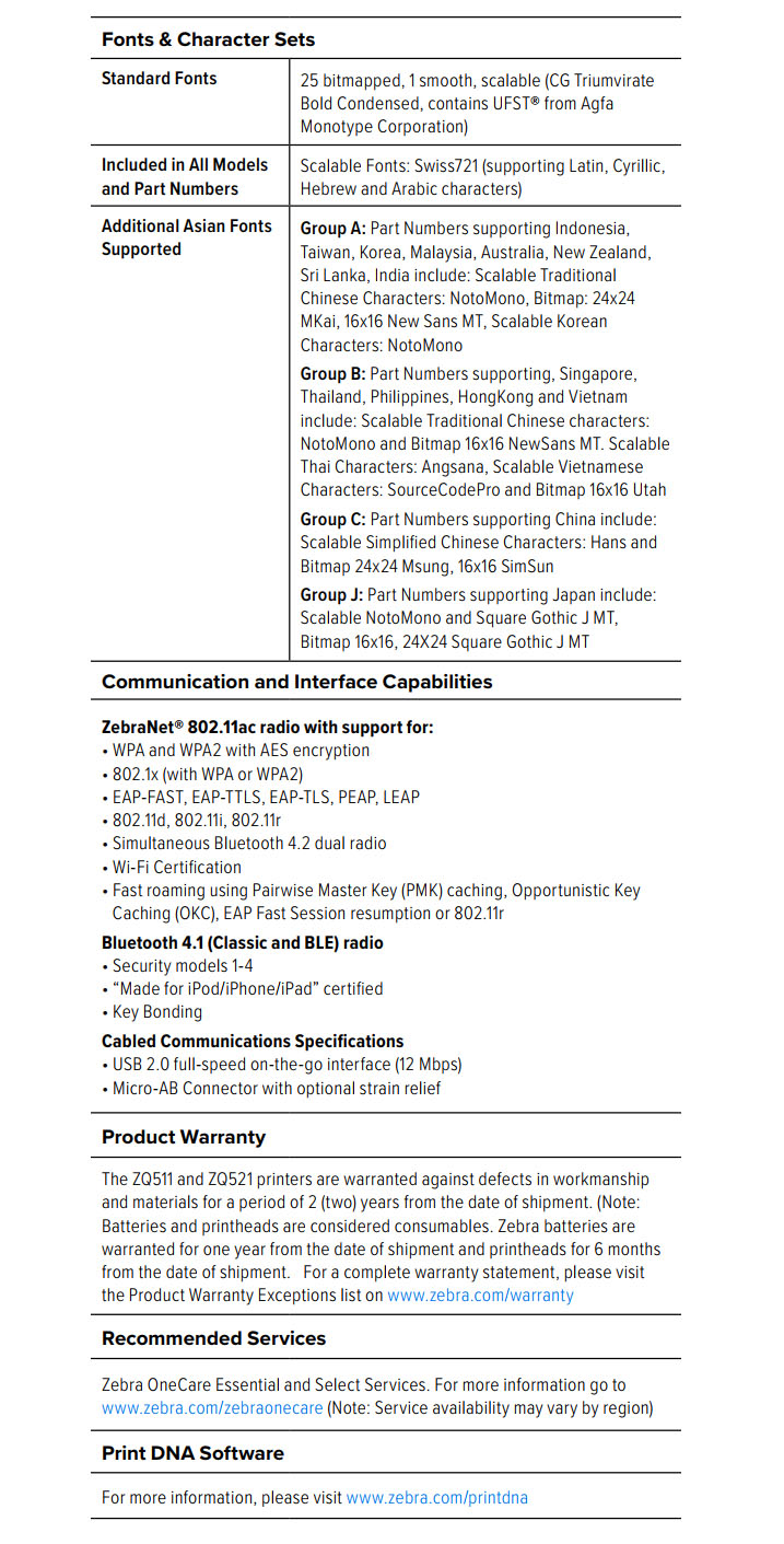 ZQ521 4 Inch RFID Mobile Printer