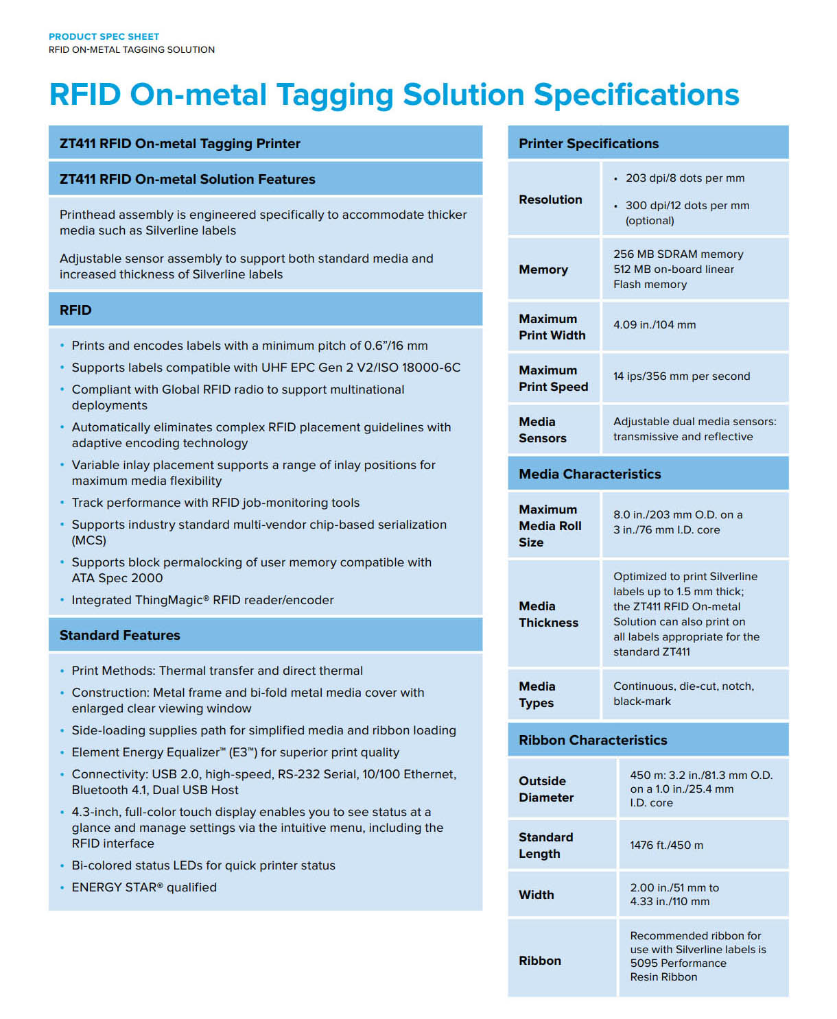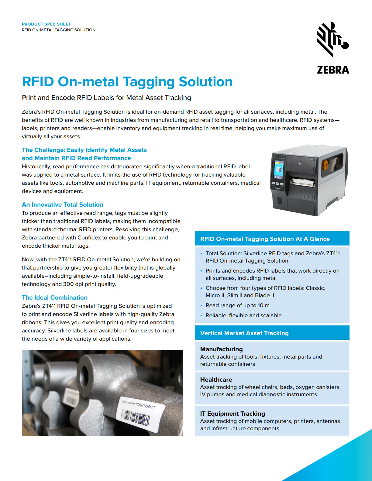 ZT411 4 Inch Thermal Transfer / Direct Thermal RFID On-Metal Tagging Solution