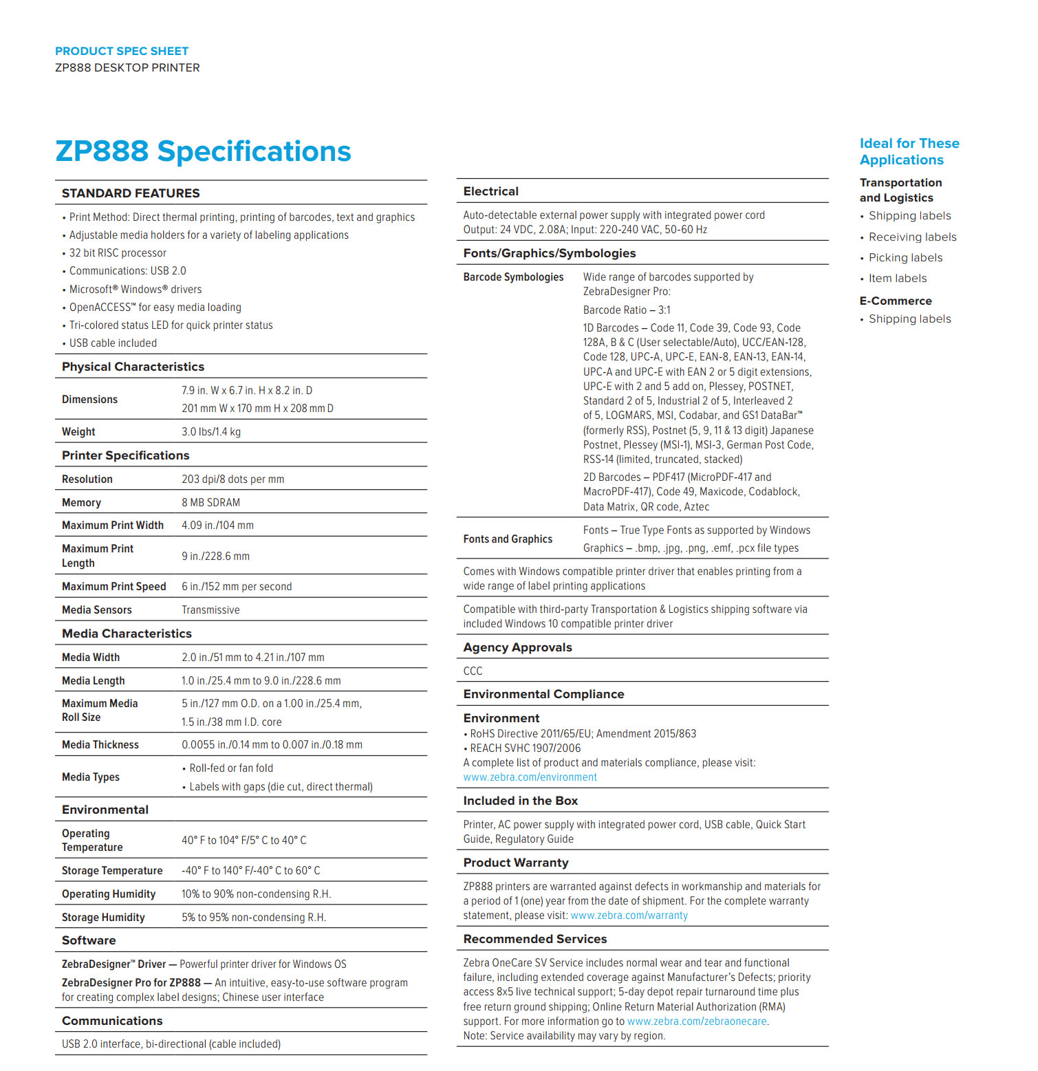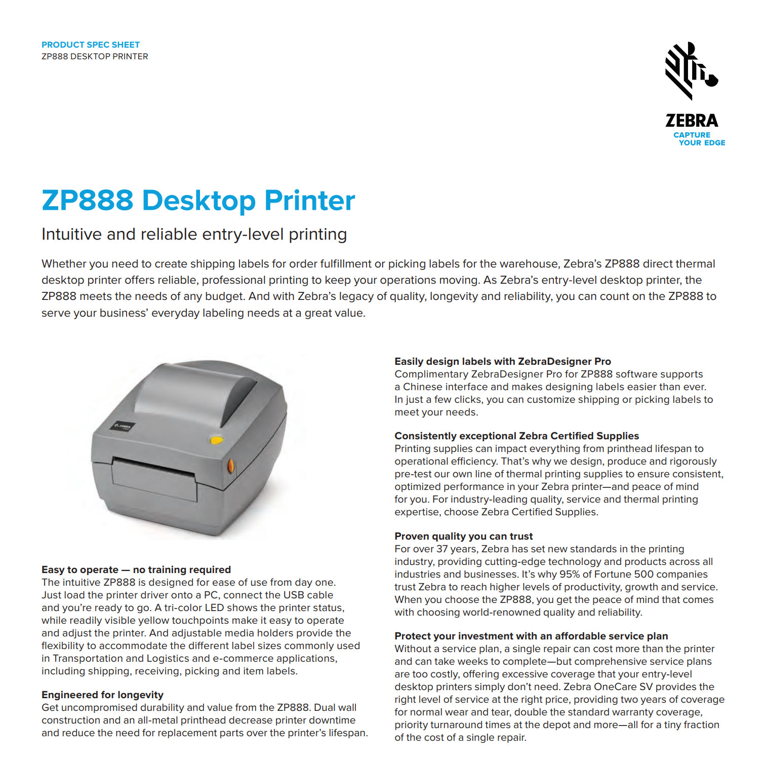 ZP888 4 Inch Direct Thermal Desktop Printer
