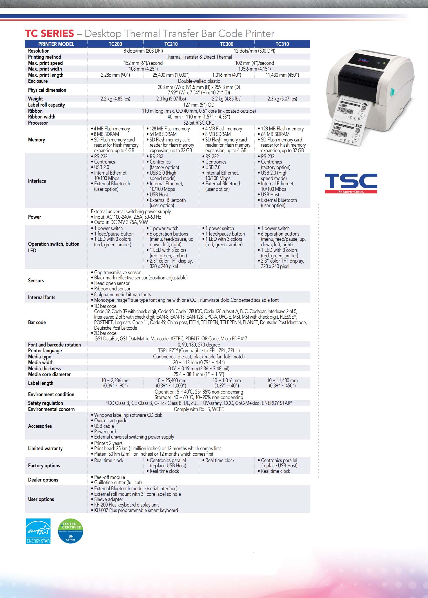 TC Series 4 Inch Desktop Thermal Transfer& Direct Bar Code Printer