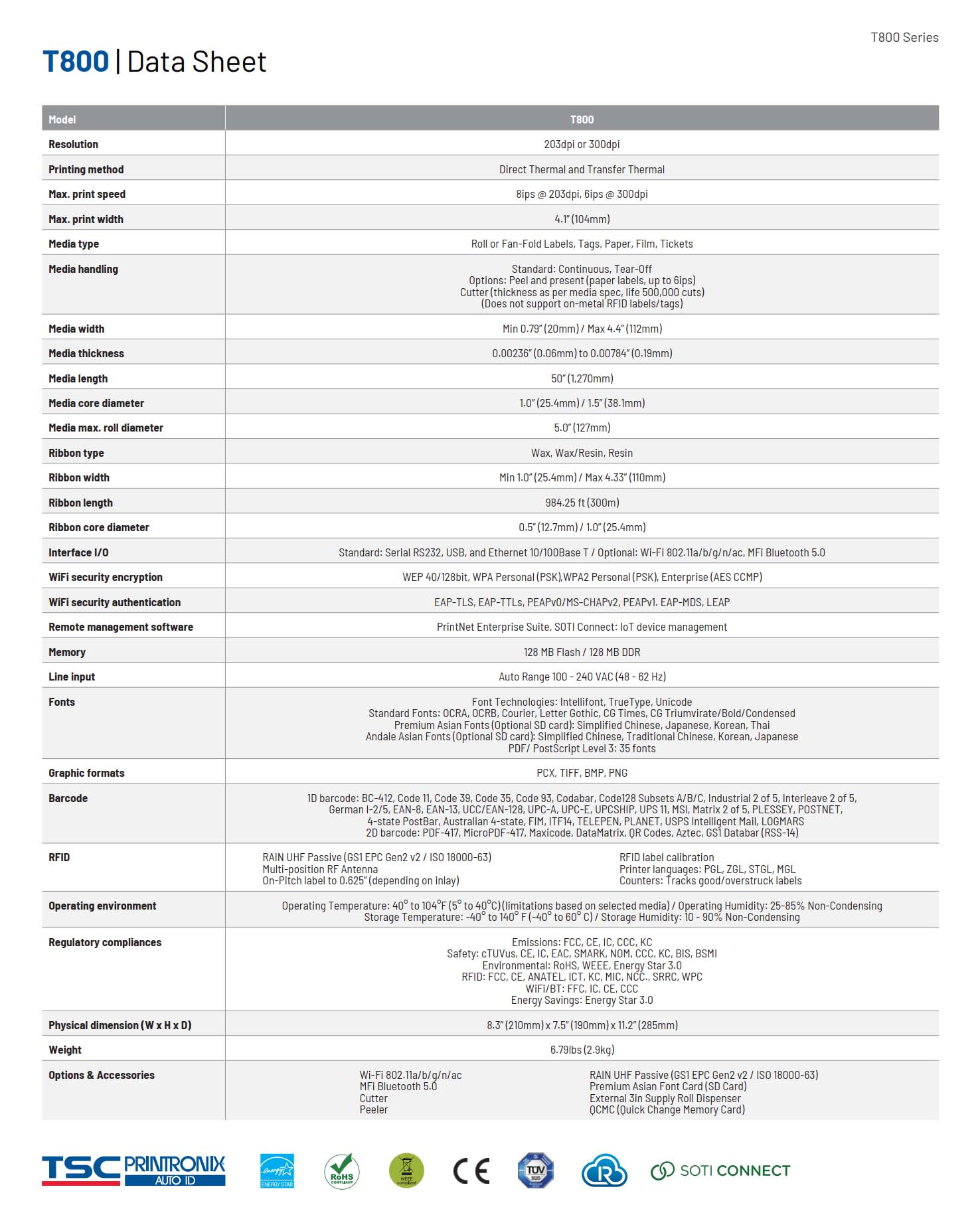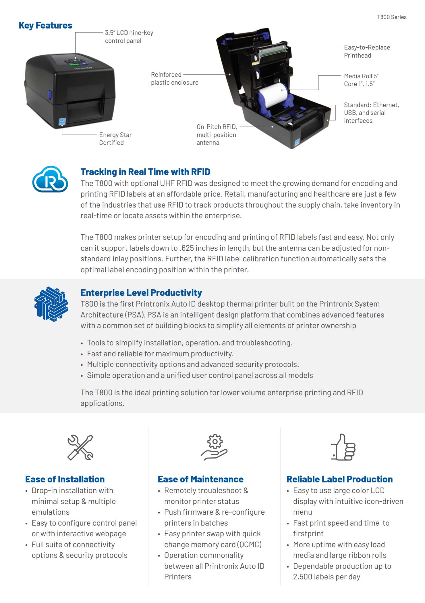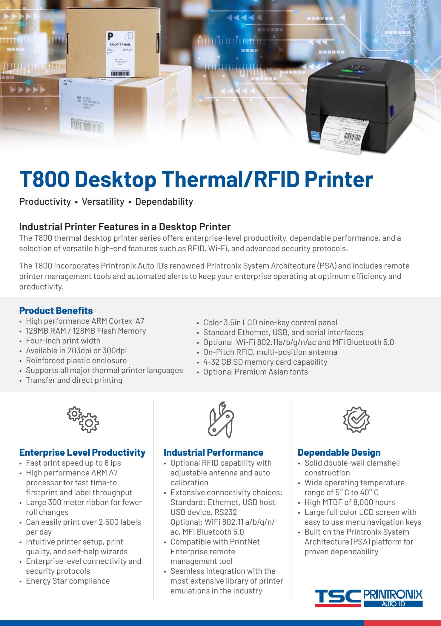 T800 Series 4 Inch Enterprise Desktop Thermal Transfer & Direct Thermal Printer