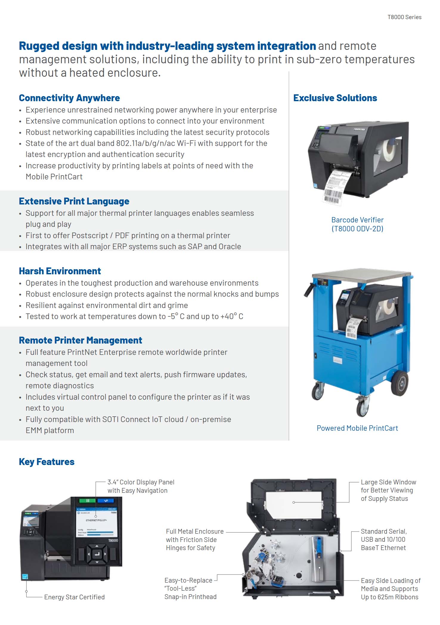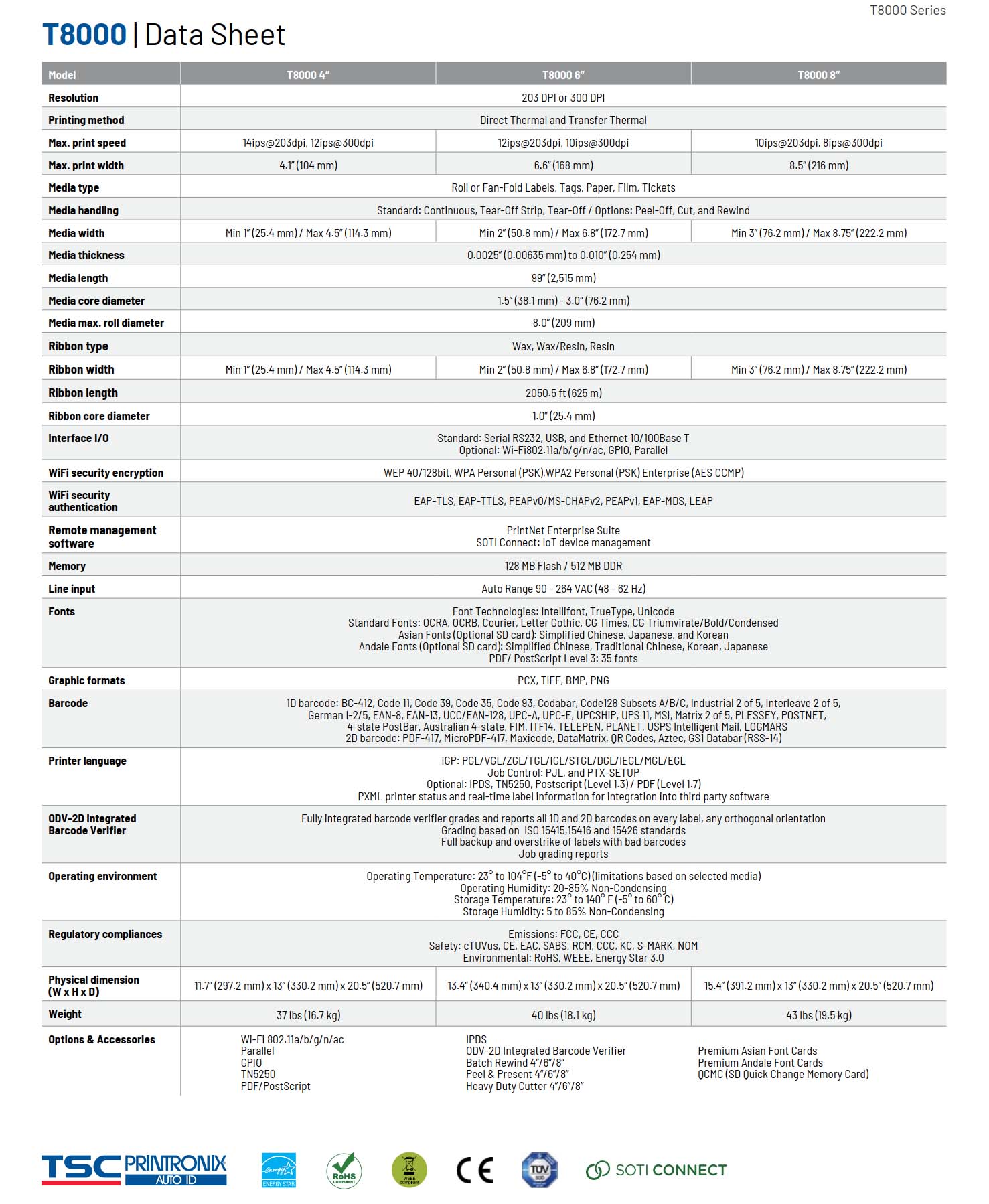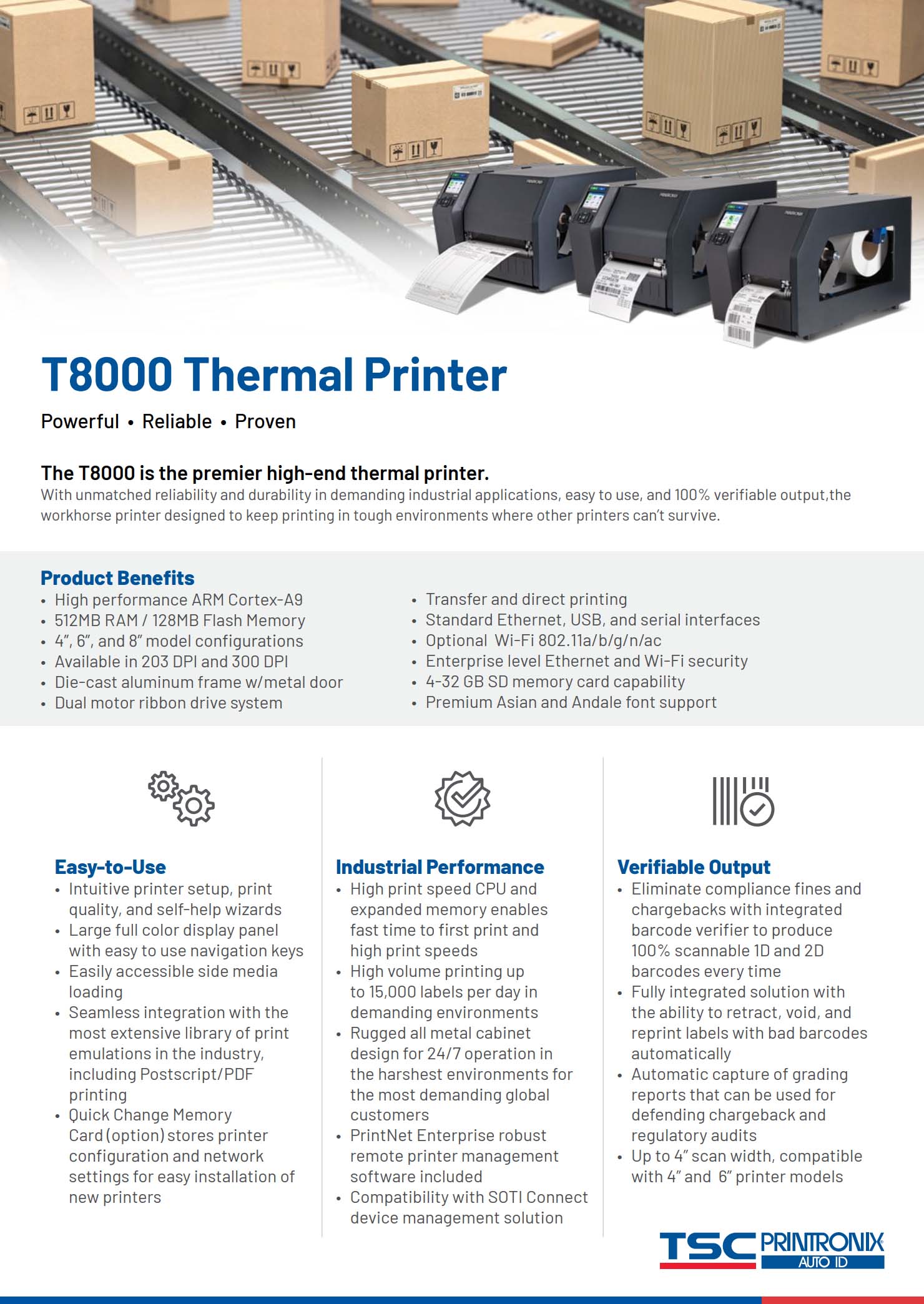T8000 Series 8 Inch Enterprise Industrial Thermal Transfer & Direct Thermal Printer