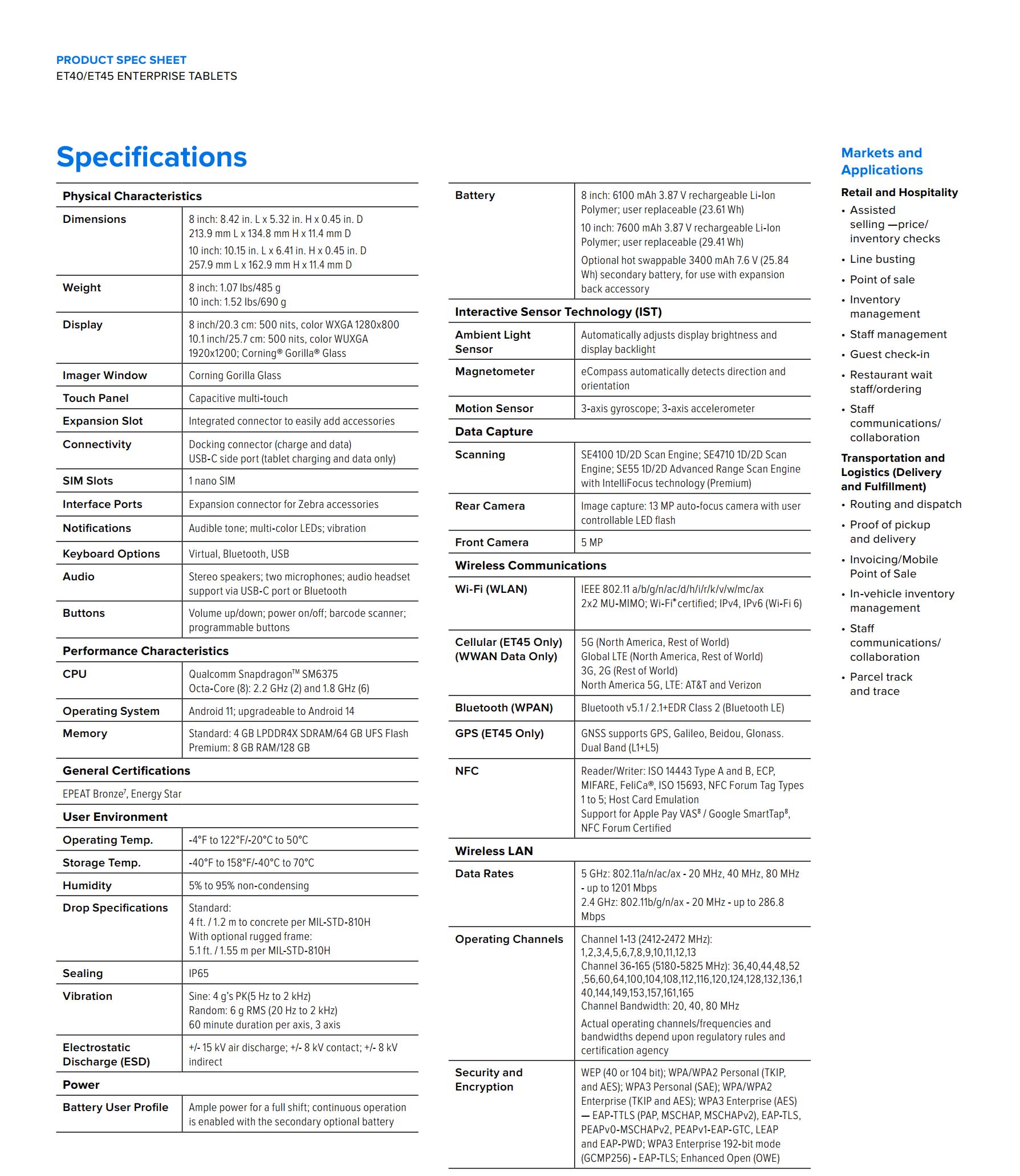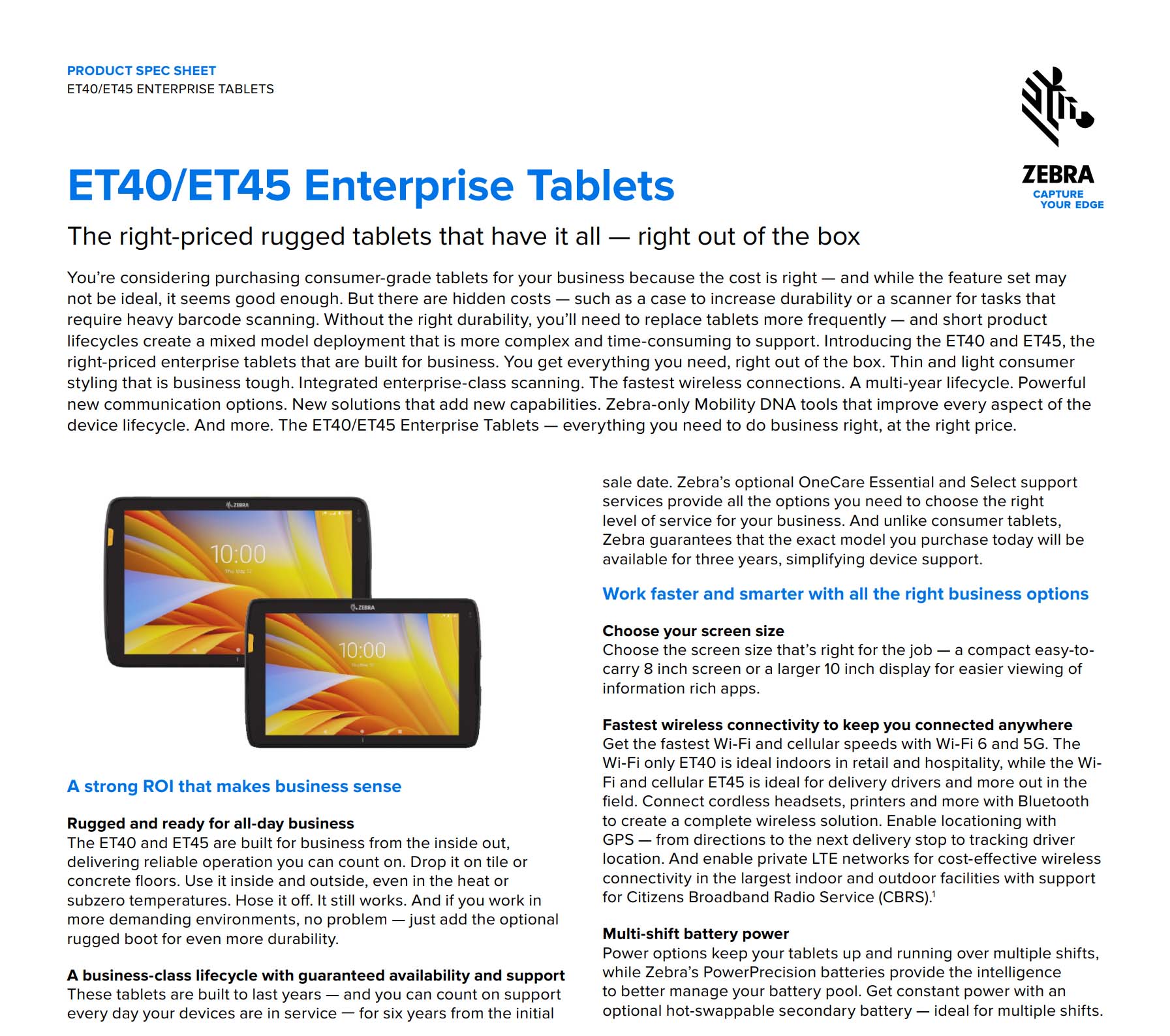 ET40 8 / 10 Inch Wi-Fi Enterprise Tablets