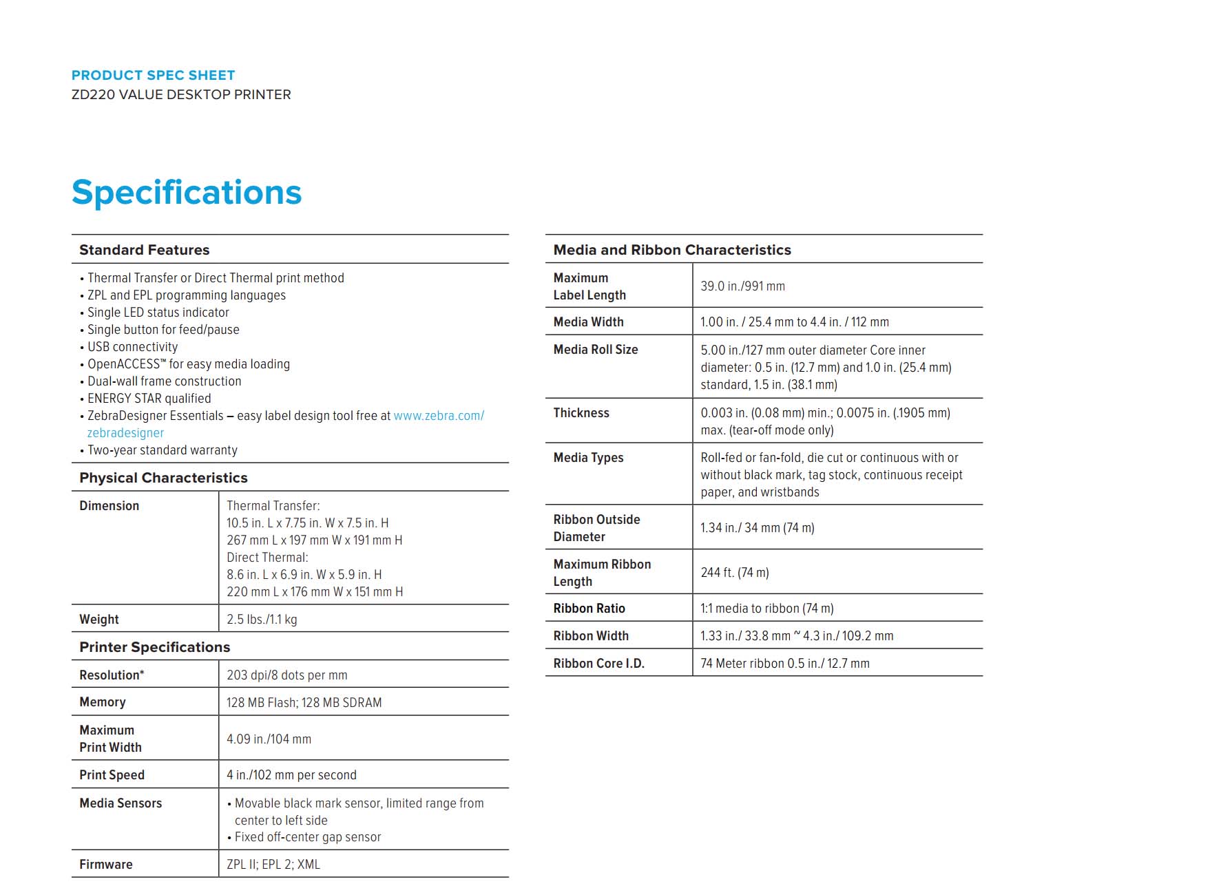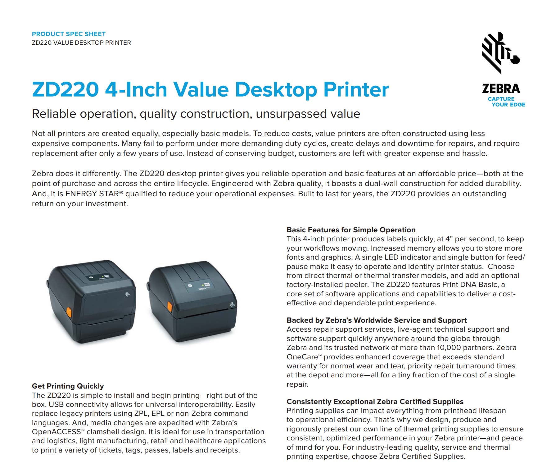 ZD220 4 Inch Desktop Printer