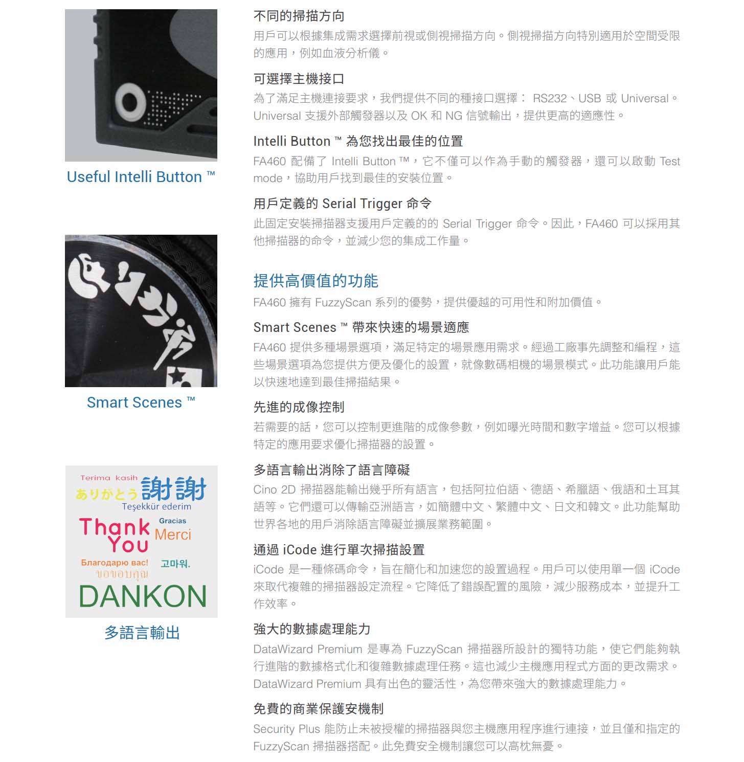 FUZZYSCAN FA460 系列 2D 固定式掃描器