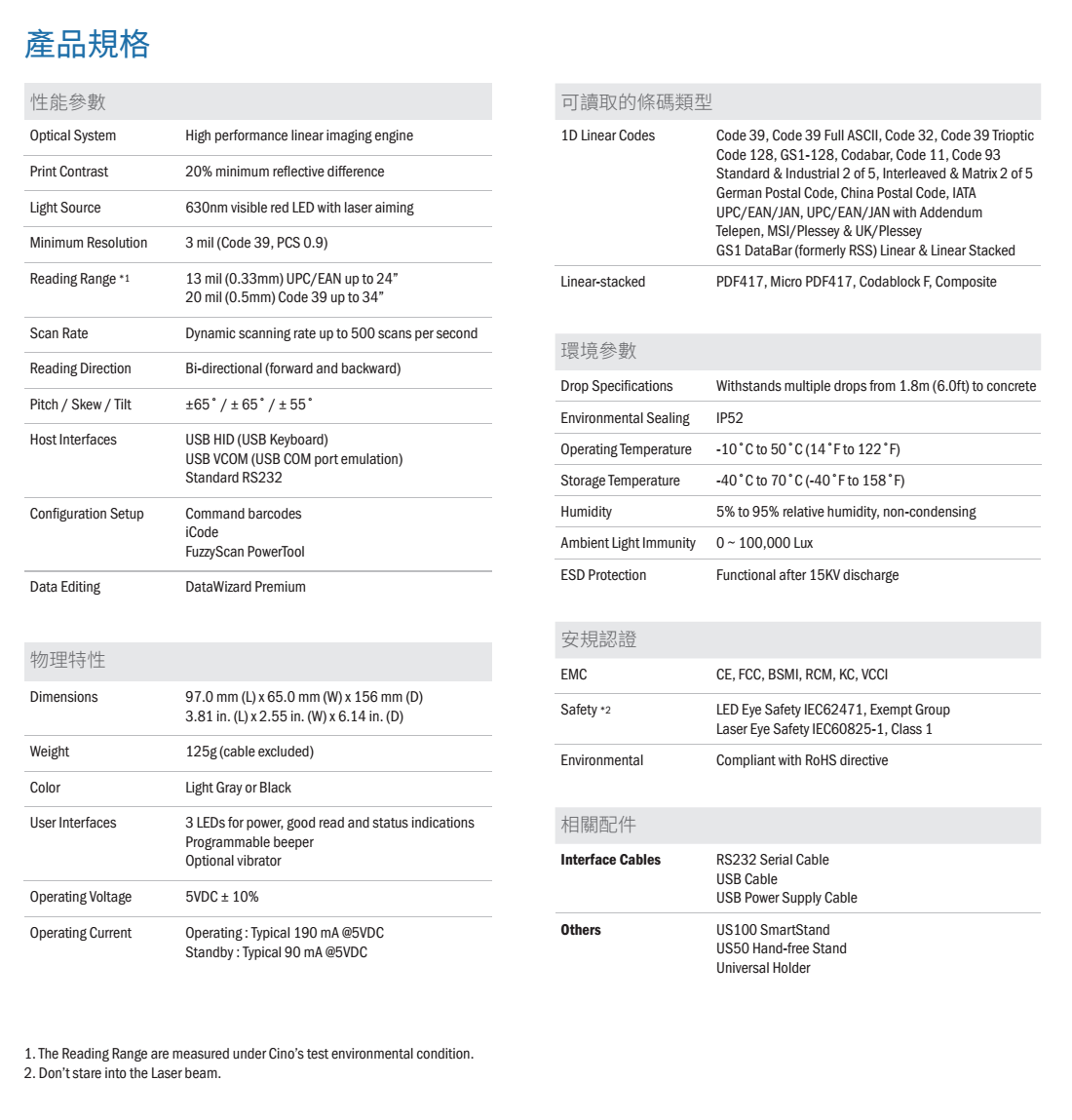 產品參數