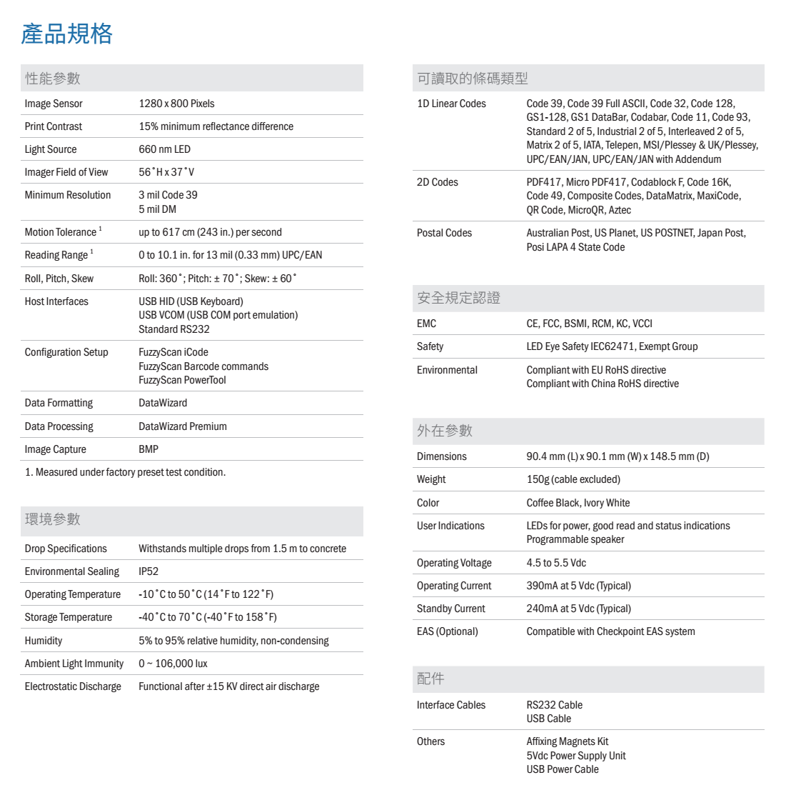 產品參數