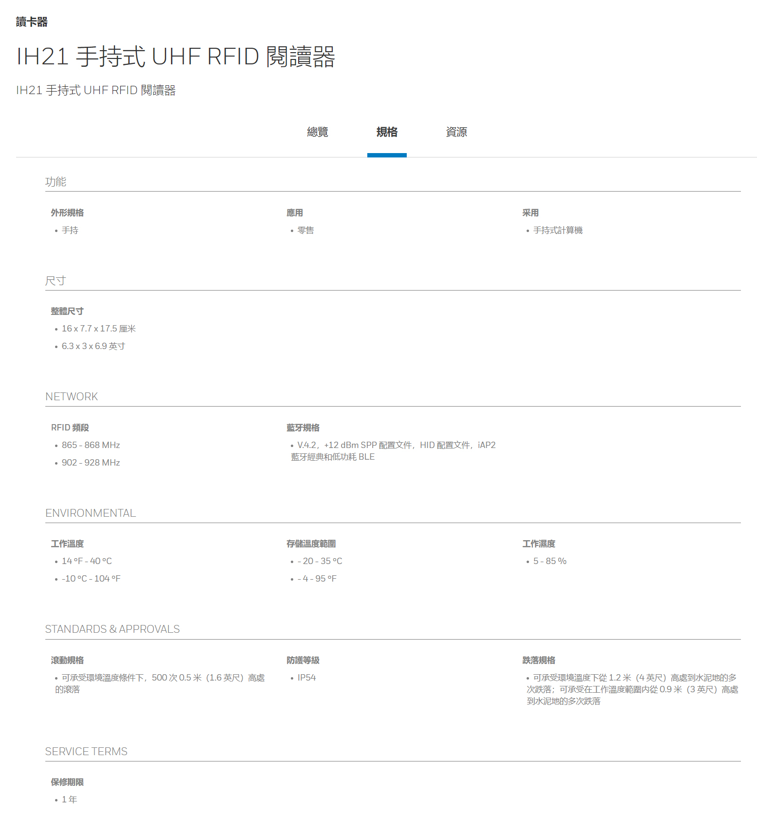 - 行業標準 EPC Global Class 1 Gen 2,RAIN RFID 閱讀器確保 IH21 可以讀取所有常見的供應鏈 RFID 標籤。