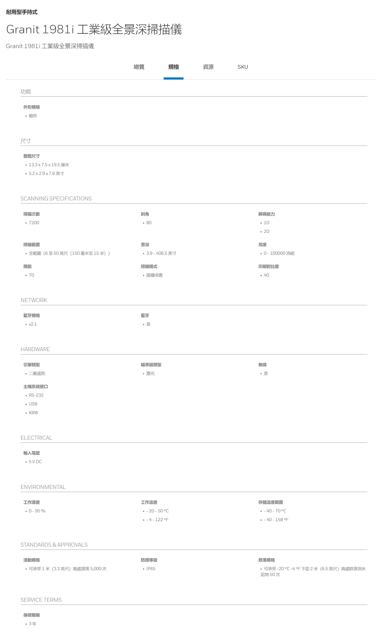 作為Granit掃描器系列的一員,1981i能夠滿足惡劣工作環境中所存在的各種嚴苛的要求。採用長期作為掃描器可靠性標杆的Granit機身外殼,1981i的工業等級達到IP65,其設計可承受5000次1m範圍內的滾落及50次從2m高處到水泥地面的跌落,哪怕是在低達-30°C的溫度下,也是如此。因此,部署了Granit掃描器的企業可實現最少的設備停機時間以及較低的總體擁有成本。