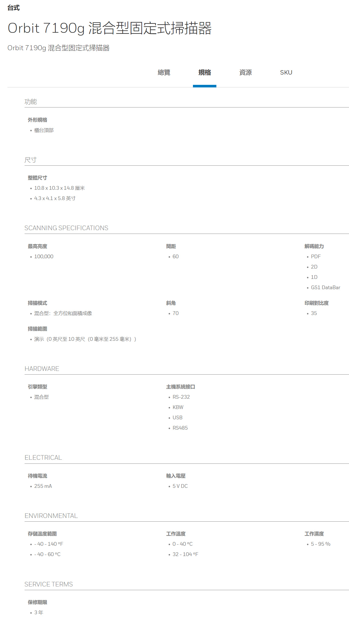 Orbit 7190g 混合型固定式掃描器