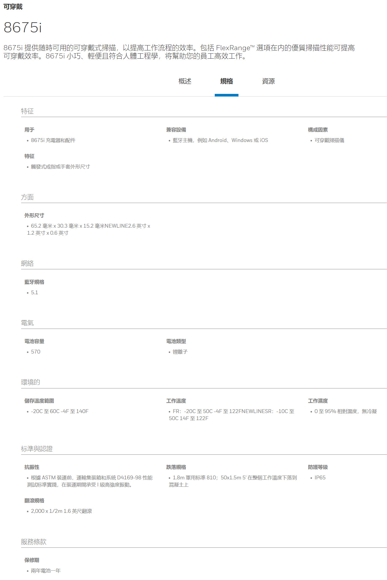 面向用戶的 LED 可傳達藍牙連接、電池充電狀態,甚至在電池健康狀況需要更換時。一流的 2,000 x ½ 米翻滾規格確保 8675i 能夠承受可穿戴設備在快節奏環境中不可避免的頻繁撞擊。IP65 密封和寬泛的工作溫度(-20 至 50C,-4 至 122F)確保無條件的倉庫、冷凍環境對 8675 來說沒有問題。