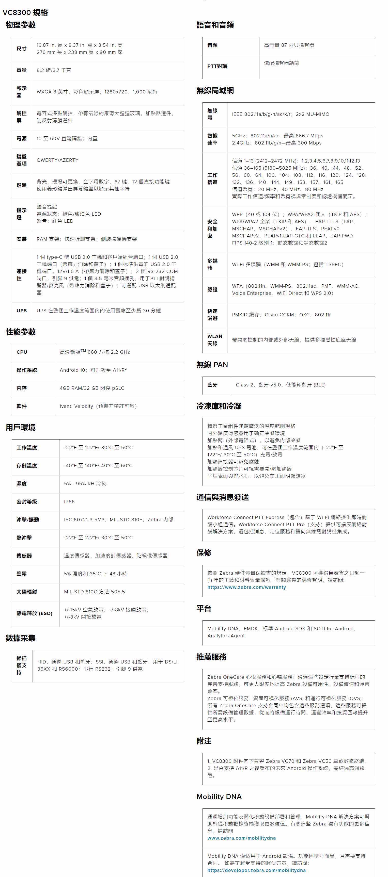 您需要一台堅固的設備來讓遷移和設備管理變得簡單、輕鬆又划算。您需要鍵盤來支援目前的“綠屏”應用程式,也需要 Android 來支援未來的應用程式。一台 VC8300 幫您搞定所有需求。這台優質堅固的 Android 車載資料終端專為滿足非常嚴苛的環境條件而設計。VC8300 支持