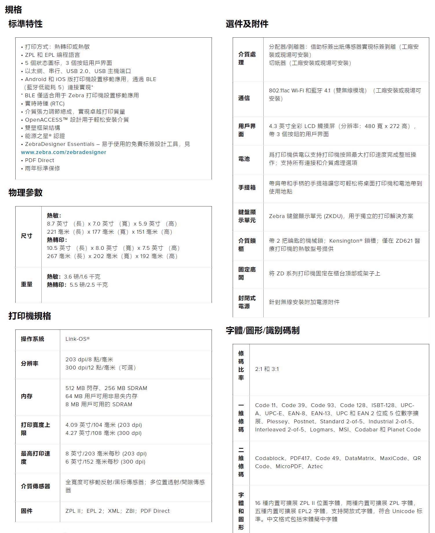 ZD621 繼承了久經考驗和暢銷的 GX 系列 和 ZD500 印表機的優勢,可提供新一代的卓越功能,包括出色的列印品質和超前適應性,為您帶來多年無憂的列印體驗。提供熱轉印和熱敏型號,提供可選的全彩色觸摸顯示幕。新增遠端系統管理功能,幫助您優化您的印表機、跟蹤耗材狀態並自動化耗材補充、確保安全性。