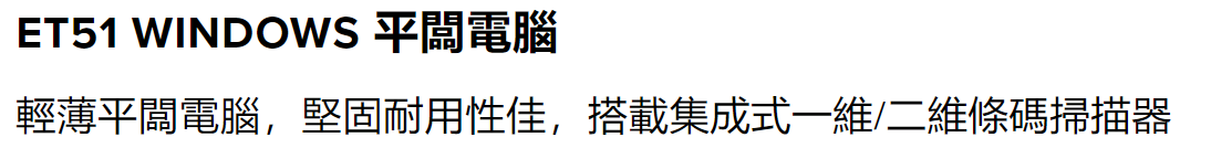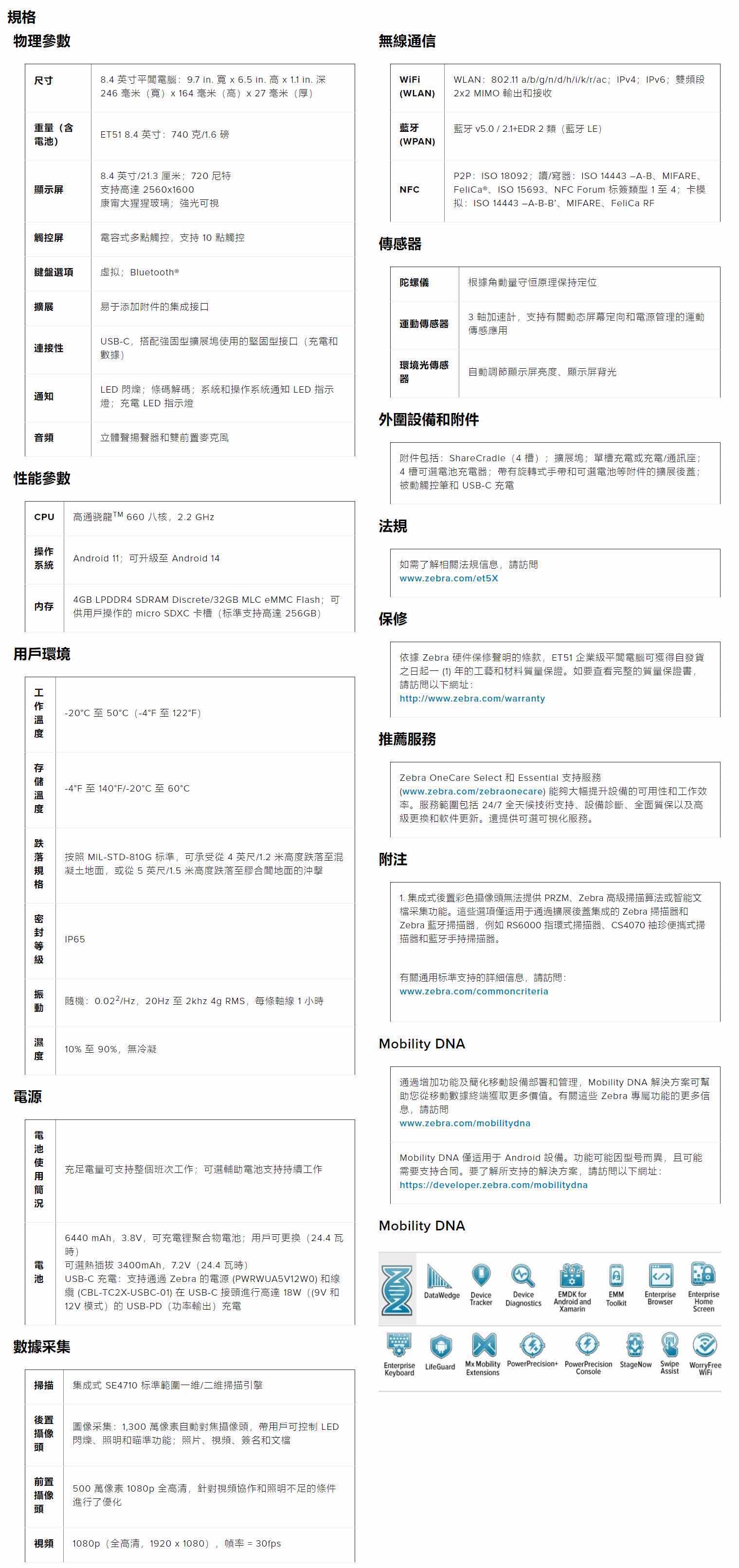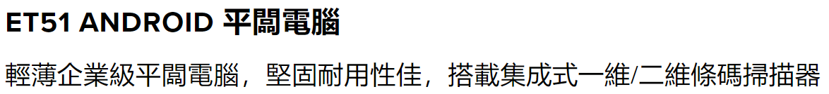 配備集成式掃描器和支付解決方案的 ET51 企業級平板電腦