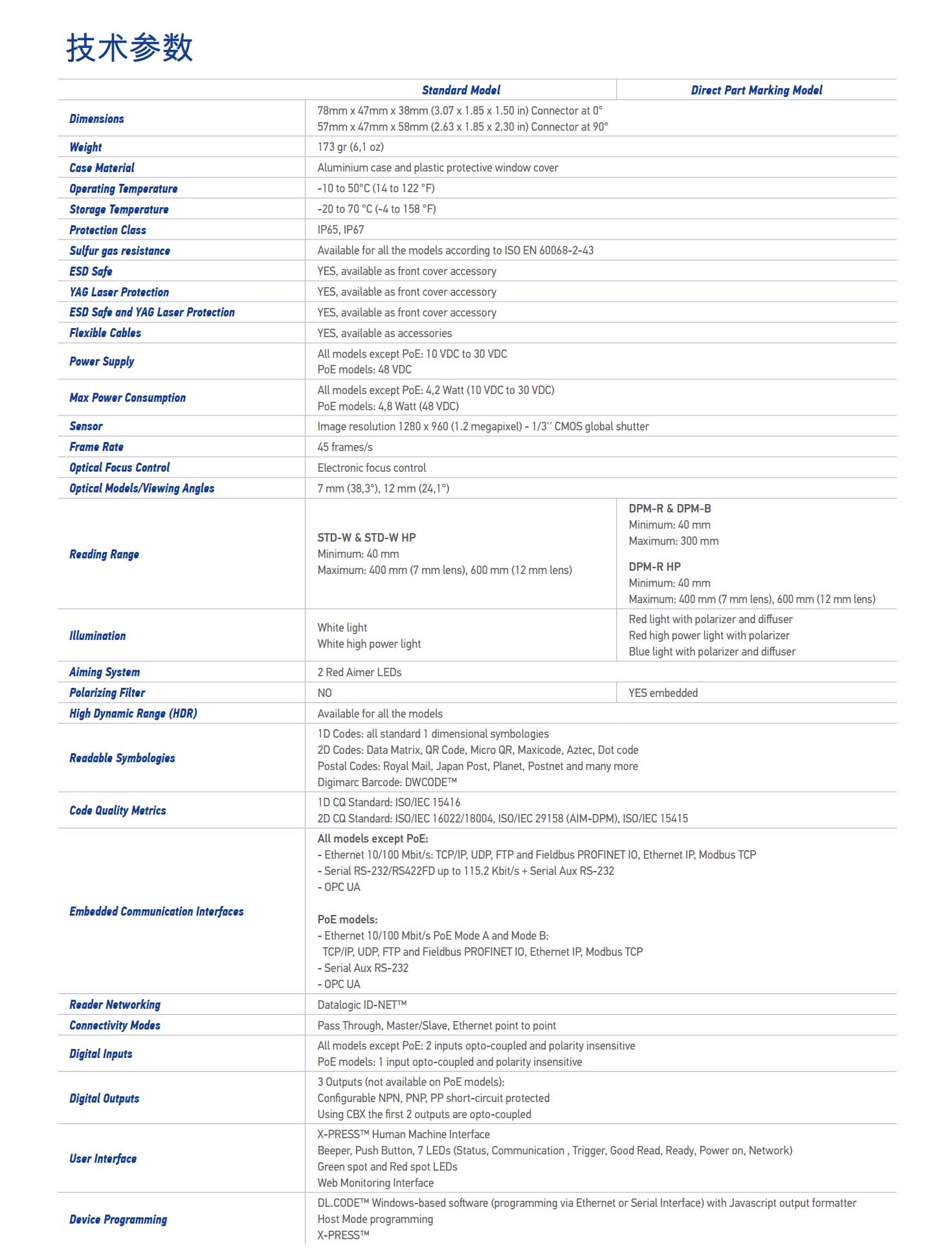 • 新型多功能DPM光源:同時集成了普通光源、漫射光源和偏光鏡功能,可滿足眾多應用需求,並具有極強的DPM讀取性能