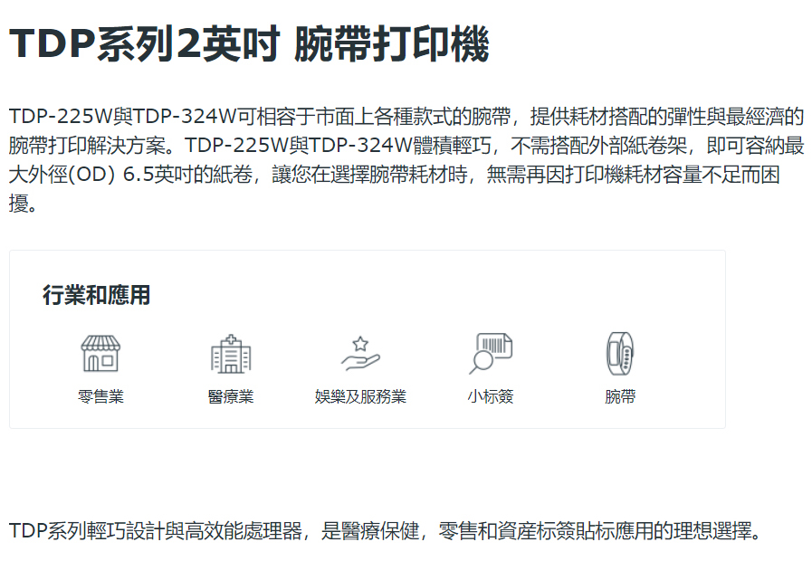TDP-324W 系列 2英吋 桌上型 熱感式 條碼腕帶印表機