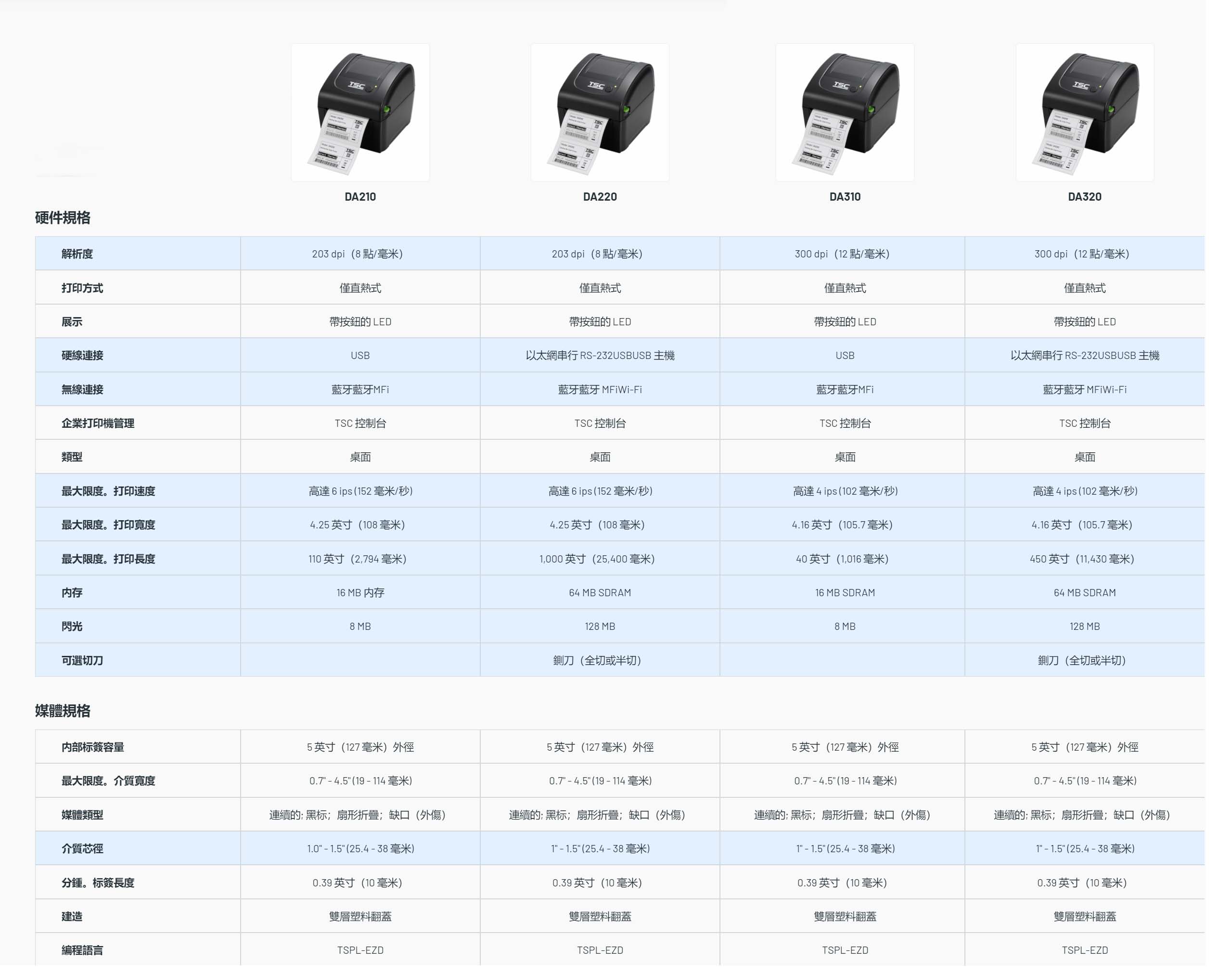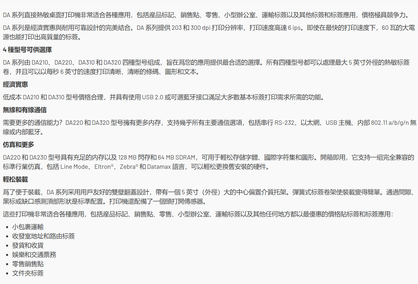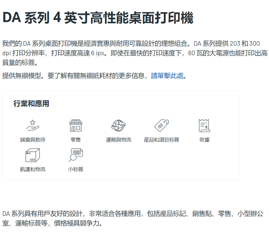 DA210 / DA220 系列 4英吋 桌上型 熱感式 條碼印表機