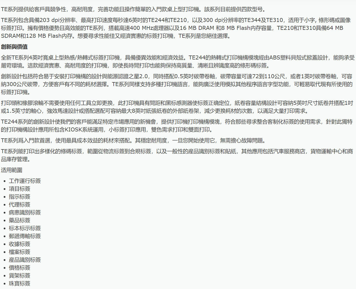 TE244 系列 4英吋 桌上型 熱感式/熱轉式 條碼印表機
