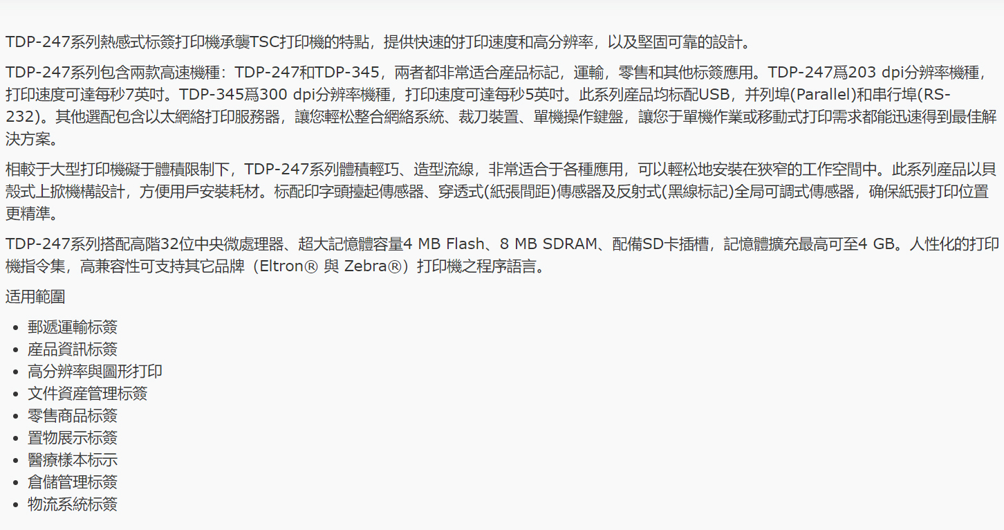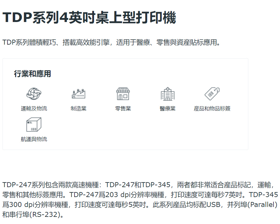 TDP-247 系列 4英吋桌上型 熱感式 條碼印表機
