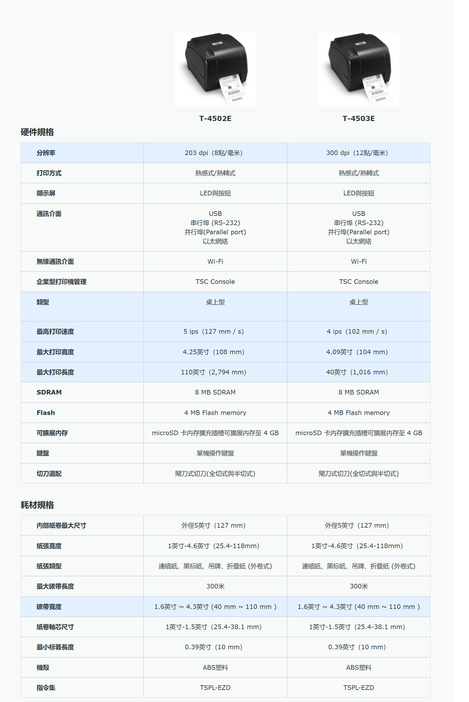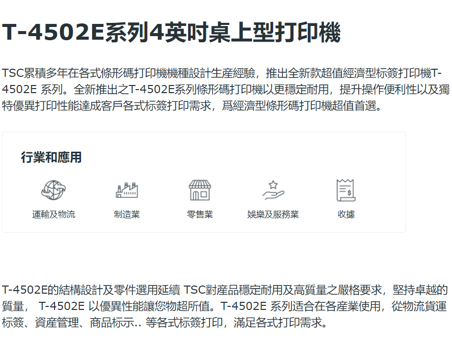 T-4502E 系列 4英吋桌上型 熱感式/熱轉式 條碼印表機