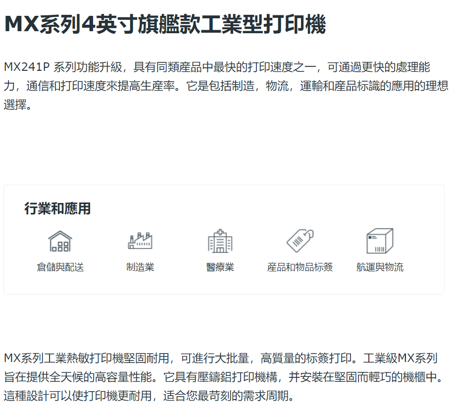 MX240P 系列 4英吋工業型 熱感式/熱轉式 條碼印表機