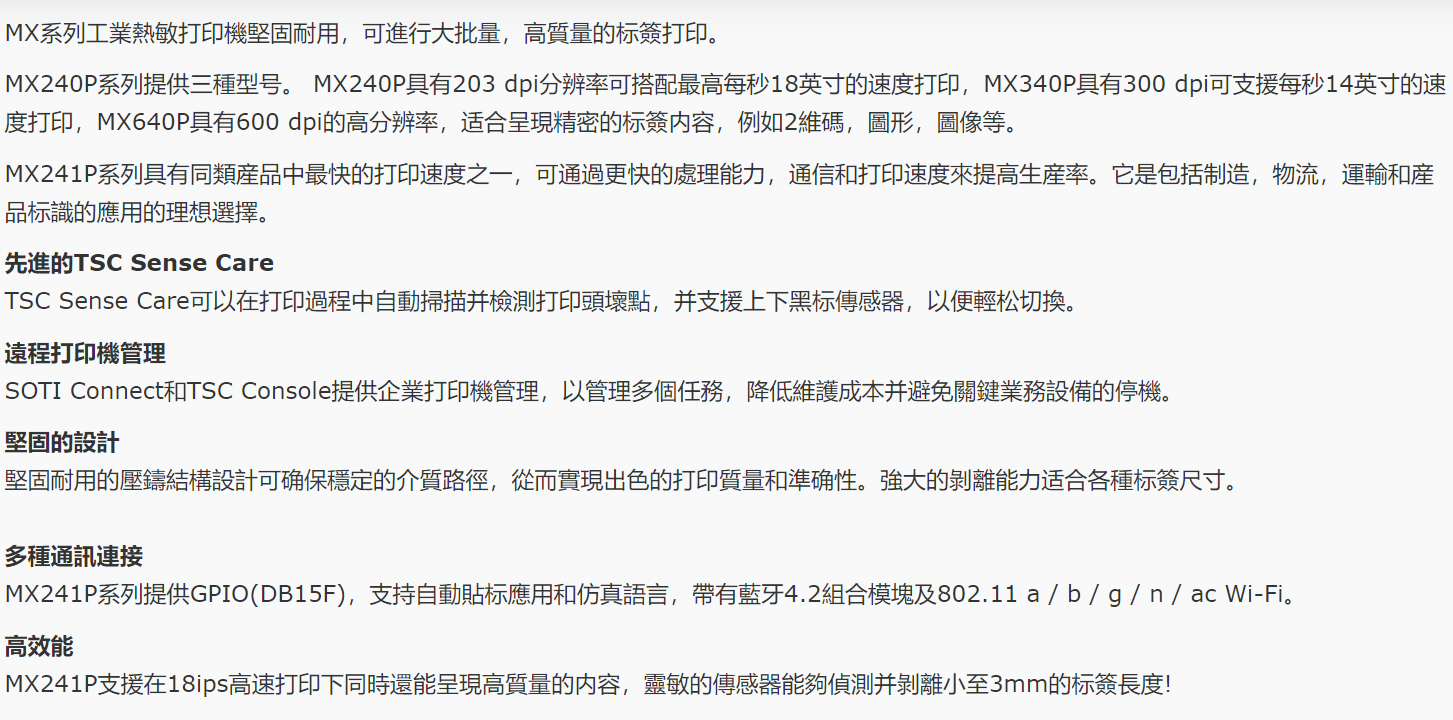 上一篇:MX241P 系列 4英吋 工業型 熱感式/熱轉式 條碼印表機