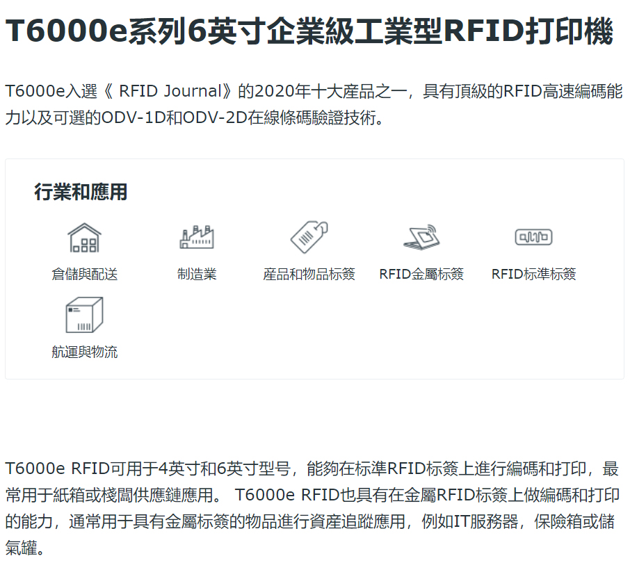 下一篇:T6000e 系列 4英吋 企業級 工業型 熱感式/熱轉式 RFID 印表機