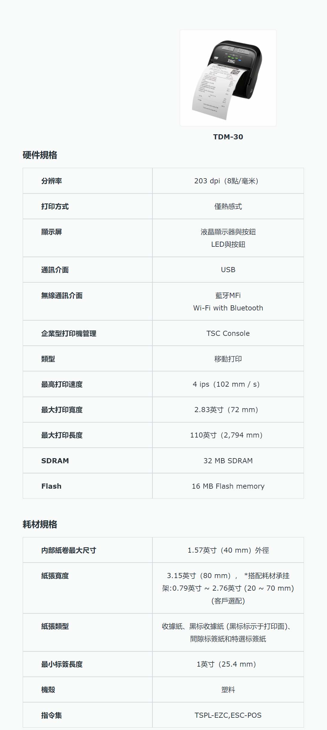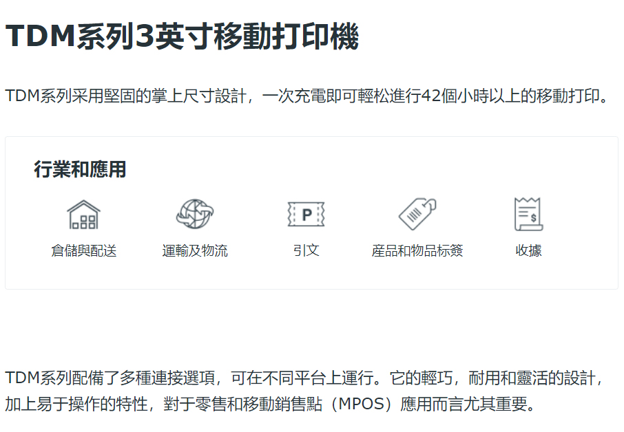 TDM 系列 3英吋 便攜型熱感式 印表機