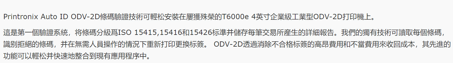 ODV-2D可避免因不合格標籤而招致高額退單和違規罰款,從而為客戶提供更好的投資回報。進階功能使其可以輕易且快速的整合進現有應用。