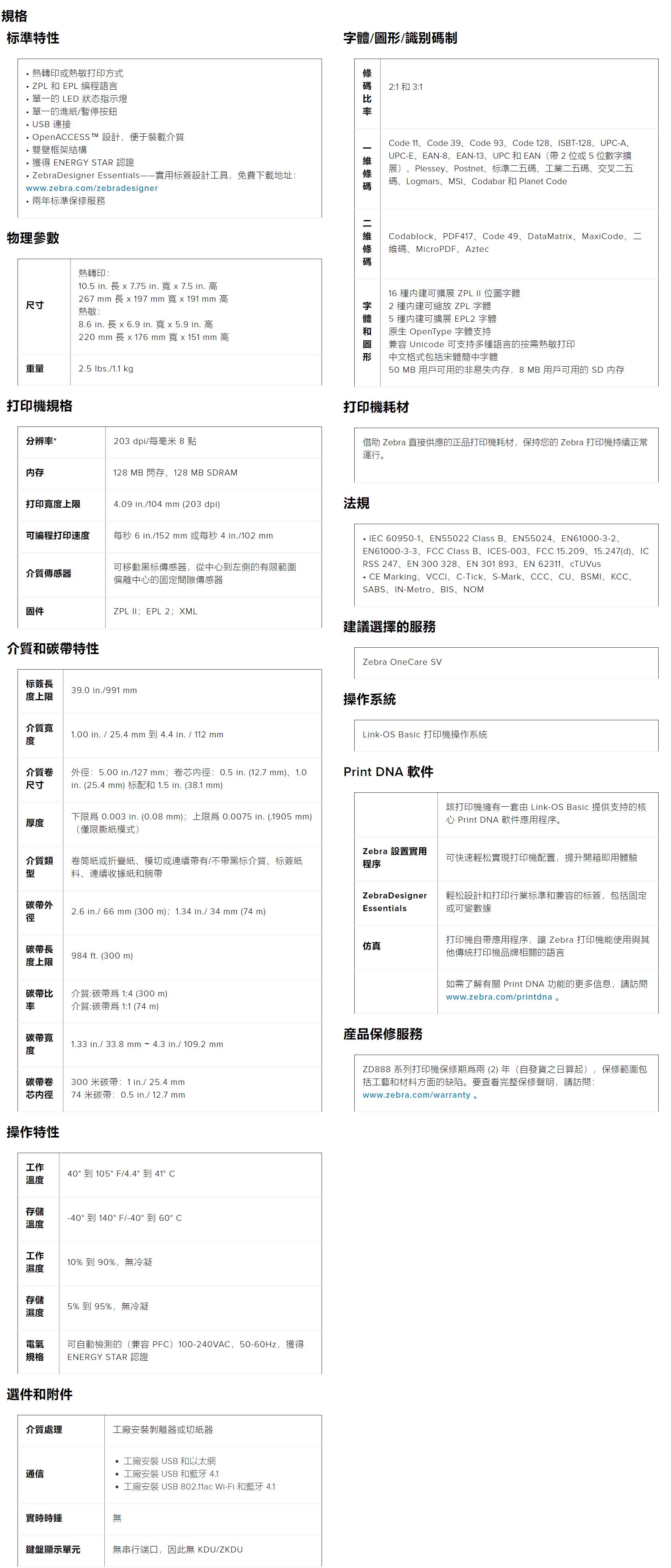 ZD888 4英寸 熱轉印 / 熱敏 印表機